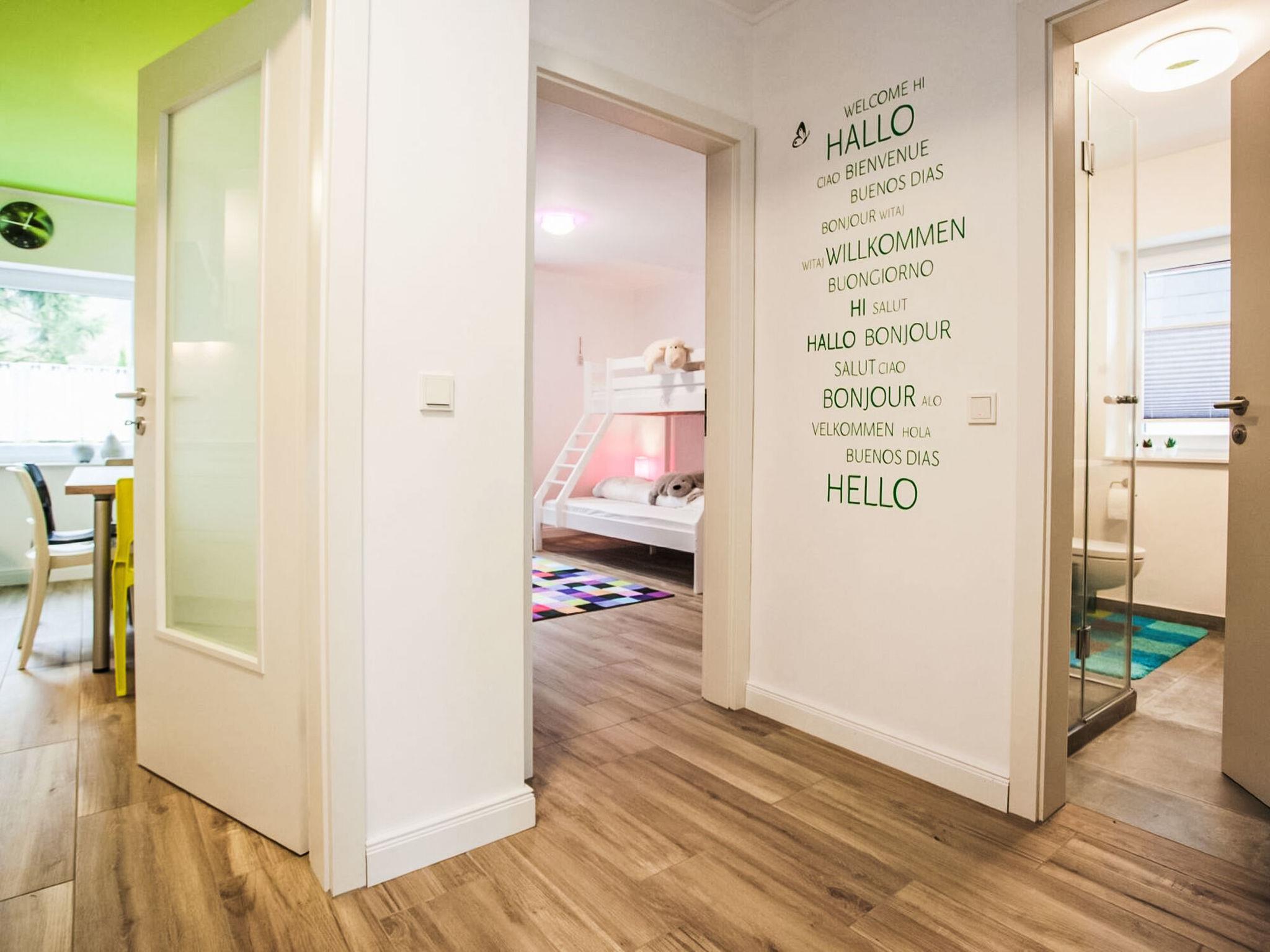 "Family Lodge", 3-room apartment 76 m2. Bright, tasteful and cosy furnishings: living/dining room with satellite TV and international TV channels. Exit to the balcony. 1 room with 1 double bed and satellite TV (flat screen). 1 room with 1 x 2 bunk beds. Kitchen (oven, dishwasher, 4 ceramic glass hob hotplates, toaster, freezer, electric coffee machine). Shower/WC. Heating. Balcony. Balcony furniture. Facilities: children's high chair, baby cot. Internet (WiFi, free). Please note: non-smokers only. Smoke alarm, fire extinguisher.