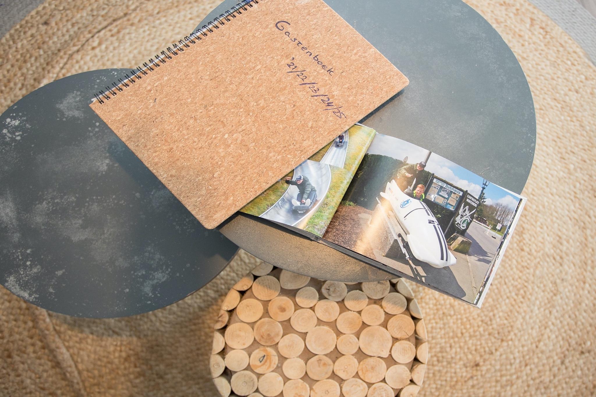 På 2. etage: (åbent køkken(elkedel, komfur, kaffemaskine(kaffepude), combi-mikroovn), stue / spisestue(Fjernsyn(fladskærm, Hollandske TV-kanaler)), soveværelse(dobbeltseng, køjeseng), badeværelse(badekar med bruser, håndvask, toilet), Repos) pulterkammer, garage, tremmeseng, balkon, varme(central), barnestol
