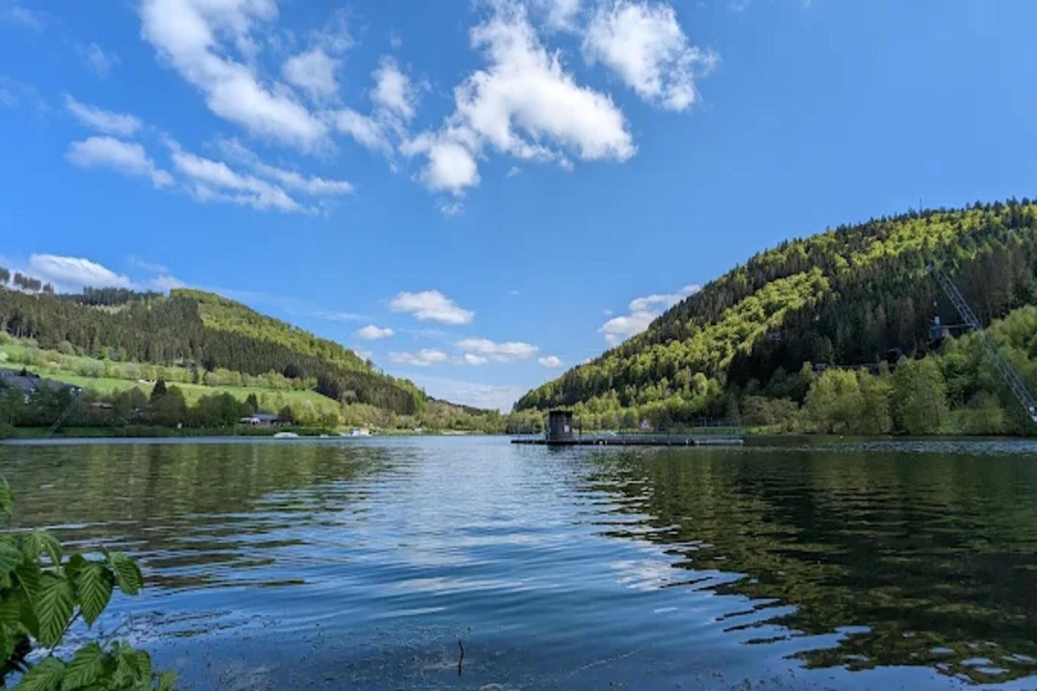 The holiday accommodation is suitable for 2 small children and up to 5 adults. The living room has a double sofa bed, a flat-screen TV and a seating area. From the living room you can go out onto the furnished terrace, where you can enjoy the sun all day. Two parasols and a grill are at your disposal. The kitchen is equipped with a hob, oven, refrigerator, dishwasher, coffee maker and kettle. The bedroom has a double bed with a wardrobe and a sofa bed for one person. The bathroom has a toilet, sink and shower. You can park your car safely in the garage or in front of it, and you can also safely store your skis and bikes in the garage. The house is in a small complex. Parking lot 3 in front of the house belongs to the house. The house is on the edge of the forest and offers an excellent starting point for hiking and skiing areas. Surrounded by magnificent nature, you can take the challenge of mountain bike trails. You can walk to the Hillebachsee and enjoy water skiing, wakeboarding, surfing, pedal boating, swimming, playing ping-pong or volleyball and much more. In the winter it is a paradise for snow lovers. Either you can ski and sledding in Niedersfeld or in the fabulous, snow-sure Winterberg. By car,it is only 10 Minutes to the excellent slopes. The magical Hochheide lures hikers. The bobsleigh run in Winterberg is 9 km from Niedersfeld. The Kahler Asten is located 12 km from the apartment. The Winterberg ski lift is 8 km away. Niedersfeld is very popular for travelers who are intersted in mountain hiking, landscapes and hiking. Shops: The center of Winterberg can be reached in 10 minutes by car. In front of the house there is a bus stop, which you can easily use to drive to Niedersfeld local center. Other shops are 5 minutes walk away.