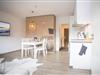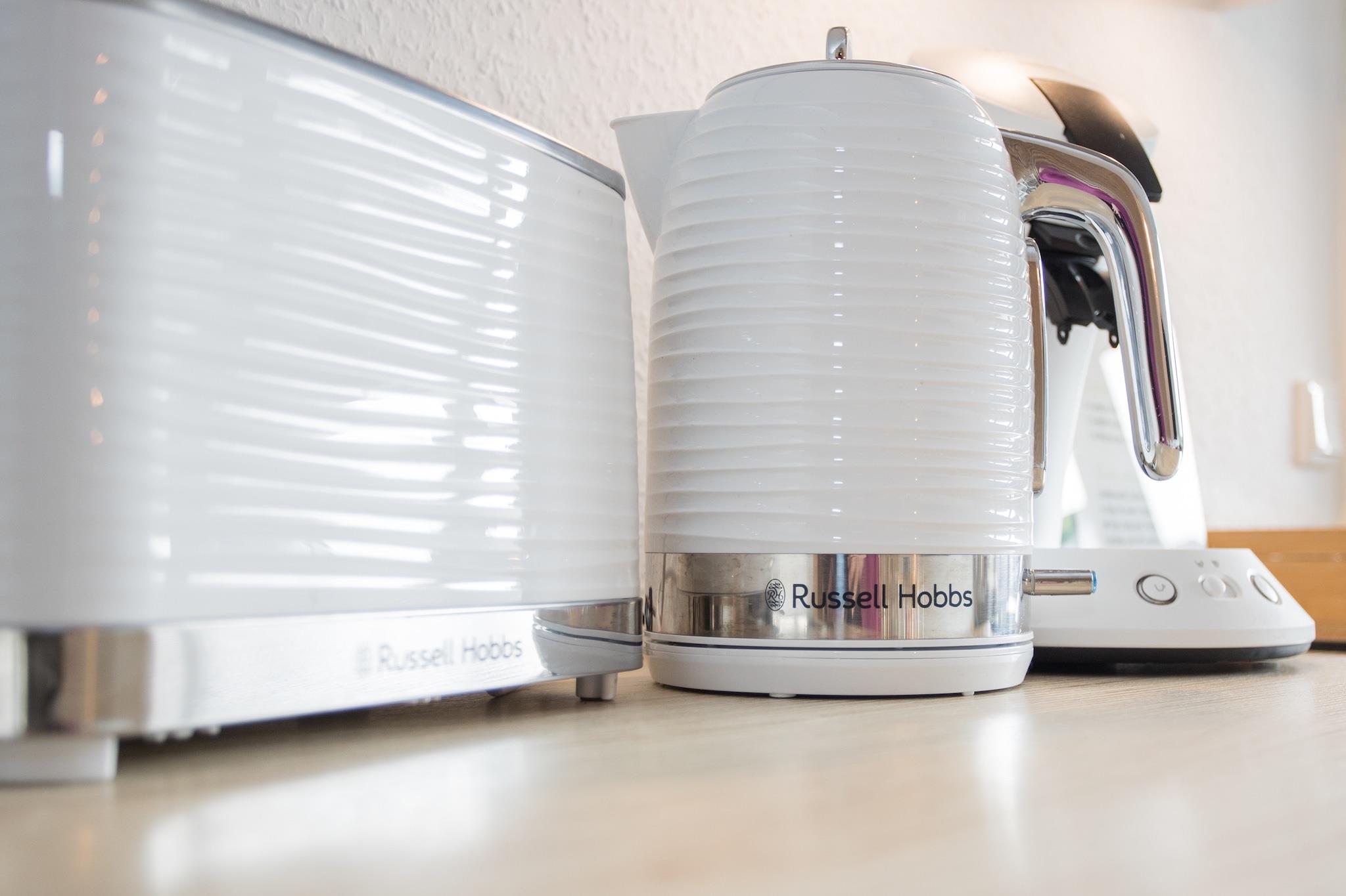 On the 1st floor: (open kitchen(dining table(4 persons), electric kettle, toaster, cooker, coffee machine(pads), oven, dishwasher, fridge(+ freezer)), Living/bed room(double bed, TV(flatscreen), seating area), bedroom(single bed, single bed, TV(flatscreen)), bathroom(shower, washbasin, toilet), Landing) storage, balcony, garden furniture, parking, high chair