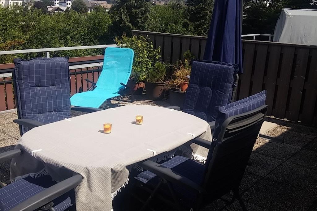 Gelijkvloers, balkon 26m², zonnig, internet, wasmachine, vaatwasser, inloopdouche, terrasmeubilair, barbecue, koelkast met vriesvakken, parkeerplaats