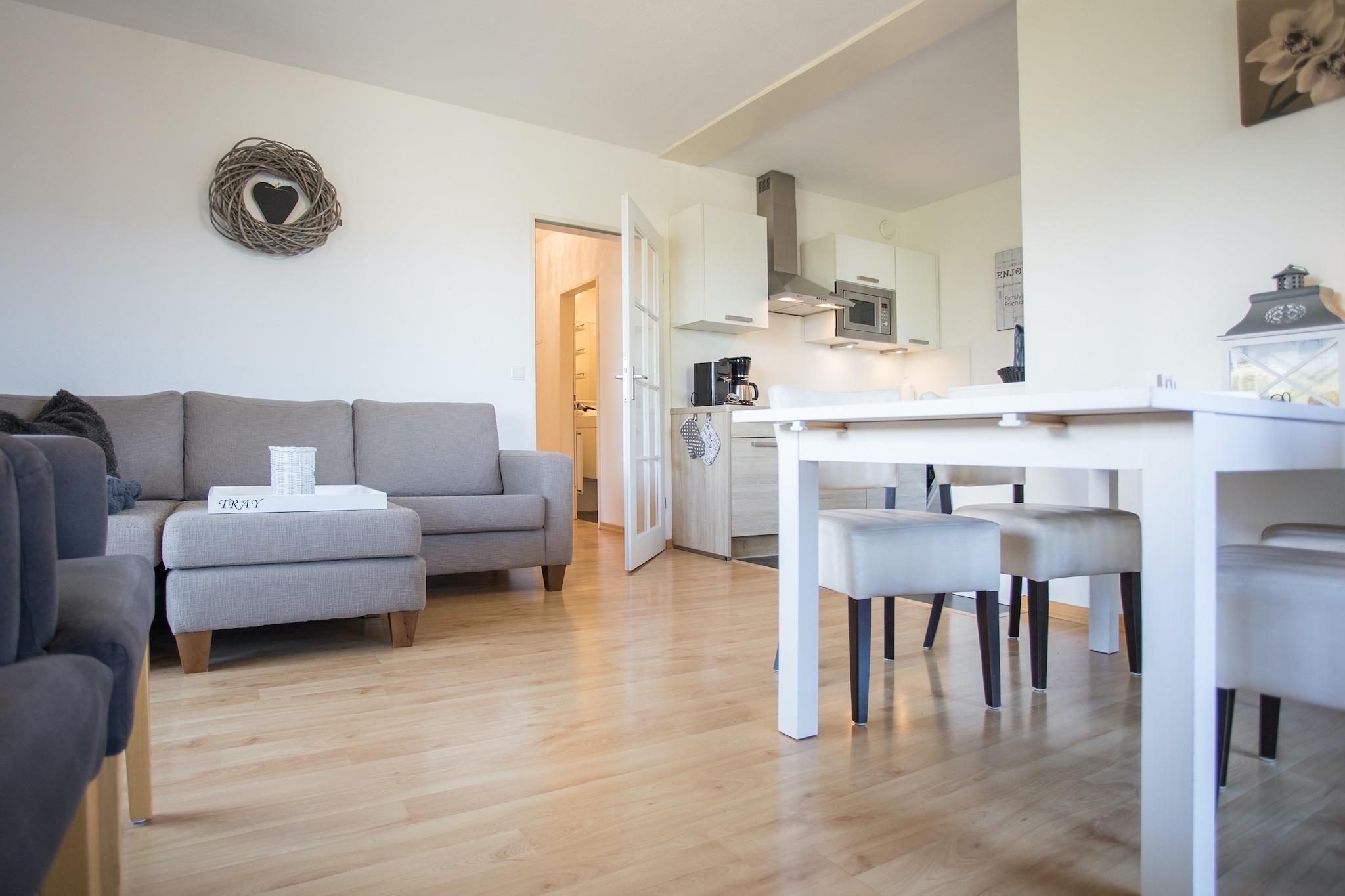 Discover this delightful holiday home in the heart of Winterberg! Enjoy the tranquility in a cozy side street, while still being in the center. Everything is within reach: the spa park, hiking trails, and the bustling shopping street with charming boutiques and cozy restaurants. Are you an adventurer? The Kappe mountain is nearby, with a ski area, bobsleigh track, and summer toboggan run. There's plenty to experience in Winterberg all year round. After a day full of activities, you can relax on one of the two balconies, with a beautiful view of the surroundings. Here you'll experience the ultimate holiday! In the cozy living room, you'll find a comfortable corner sofa, two armchairs, and an ottoman that serves as a coffee table. Here you can relax in front of the television or enjoy each other's company. The open kitchen is a great place for cooking enthusiasts. With all imaginable appliances, cooktop, dishwasher, fridge with freezer compartment, microwave with grill function, toaster, sandwich maker, and plenty of extra cooking utensils, you can effortlessly prepare the tastiest meals. Enjoy your homemade dishes at the cozy dining table for four people. Or step outside and dine on one of the two balconies (5m2 and 6m2), where you can choose between a garden table with chairs or a cozy picnic bench. After a day full of adventure, a wonderful night's sleep awaits you in one of the two bedrooms. The master bedroom offers a spacious box spring bed (180x200cm) and television, while the second room has a comfortable double bed (140x200cm). For extra sleeping accommodations, the sofa in the living room can easily be converted into a sofa bed. The bathroom is equipped with both a bath and a shower, sink, and toilet. Everything you need for a relaxing stay! Extra conveniences such as a free parking space, laundry facilities including a washing machine and dryer (coin-operated), and a shared ski storage make your holiday complete. The little ones are also catered for with a high chair and (foldable) cot (60x120cm). The property also has a storage room with shelves and an extra wardrobe. Ironing board, drying rack, vacuum cleaner, sweeping set, and much more. Come and experience for yourself how wonderful it is to stay here!