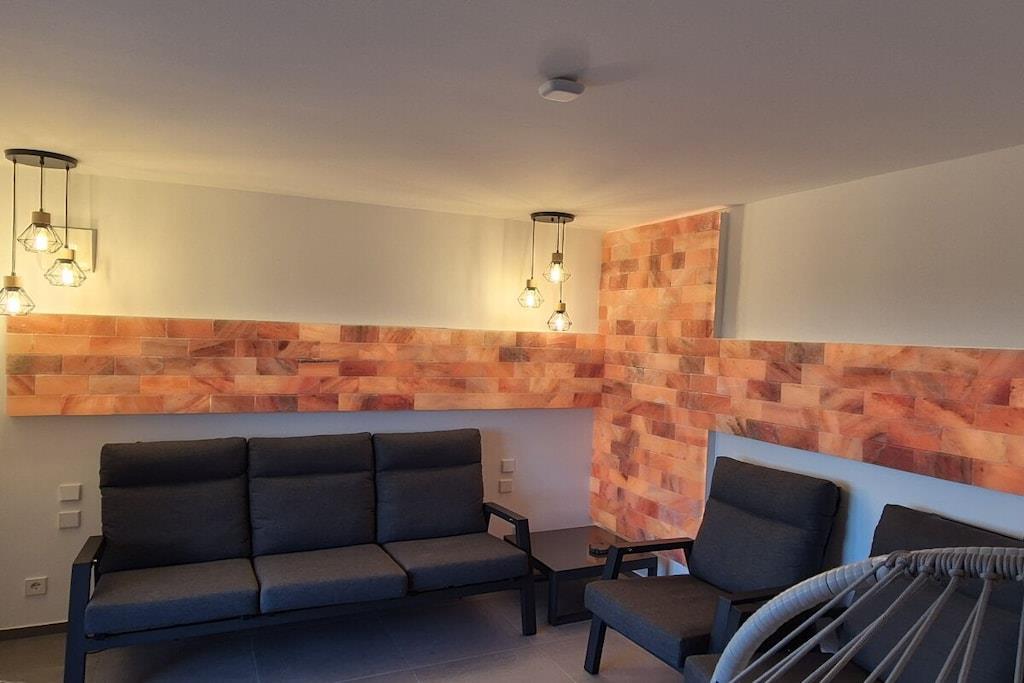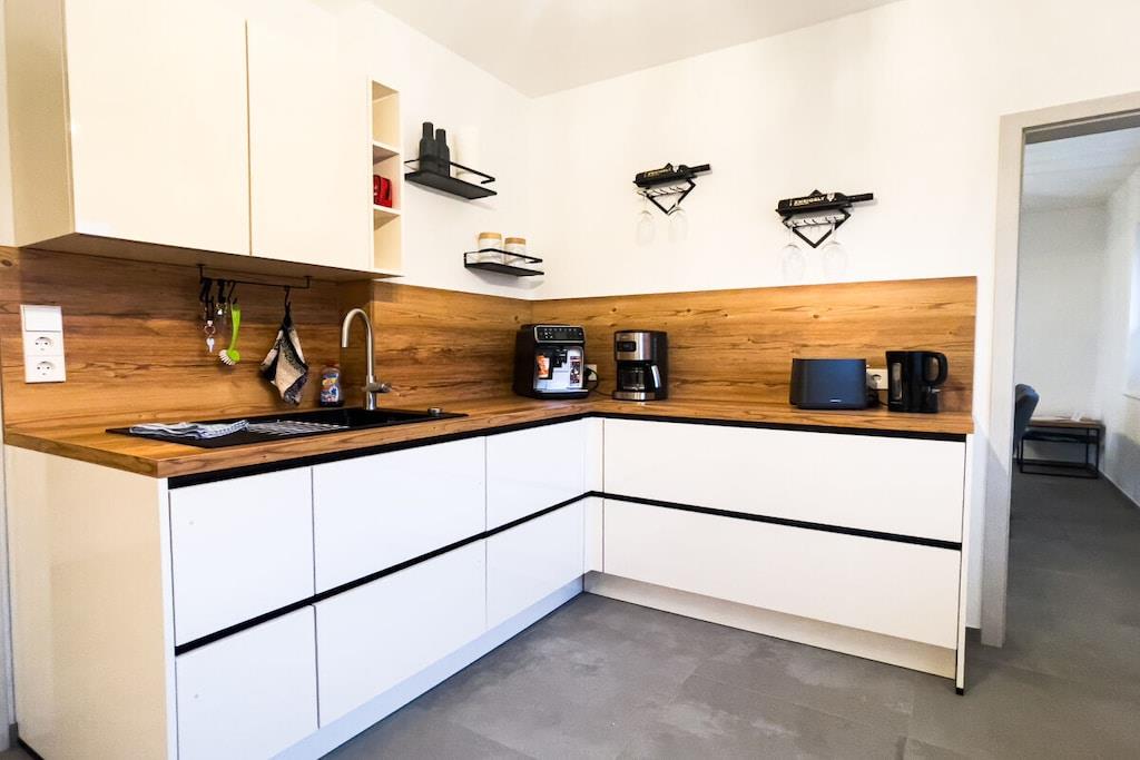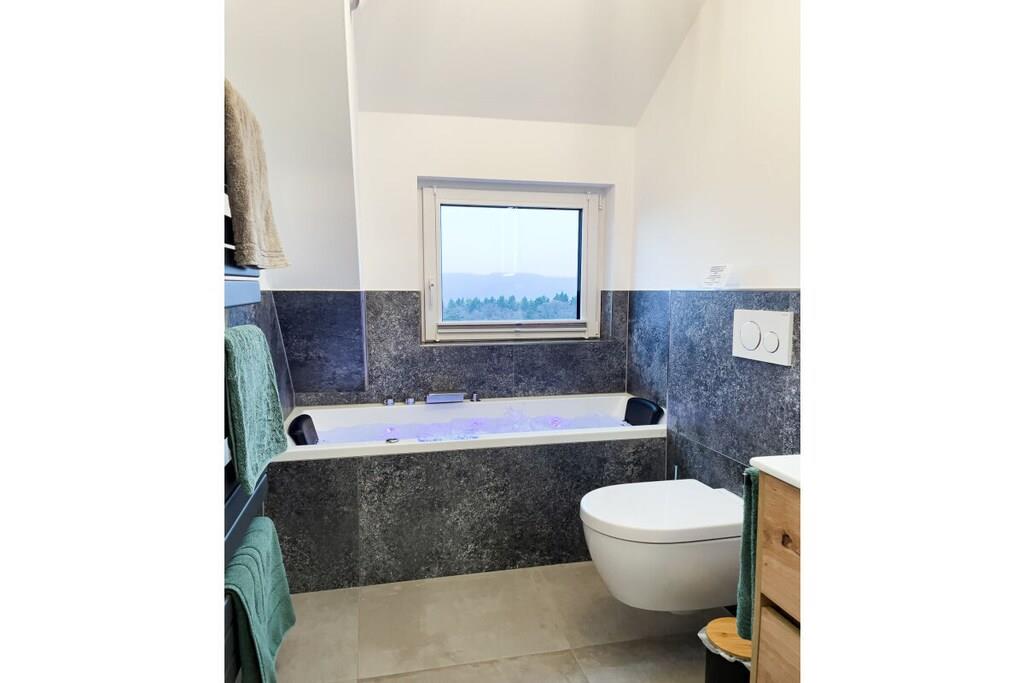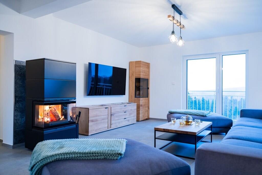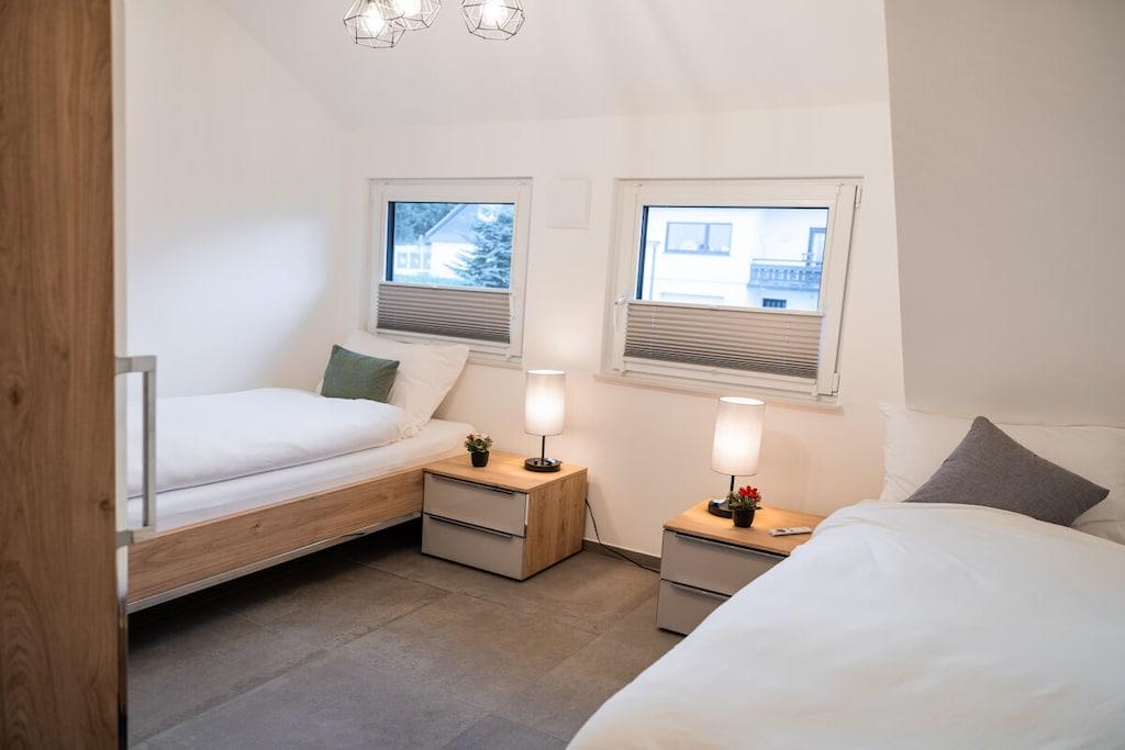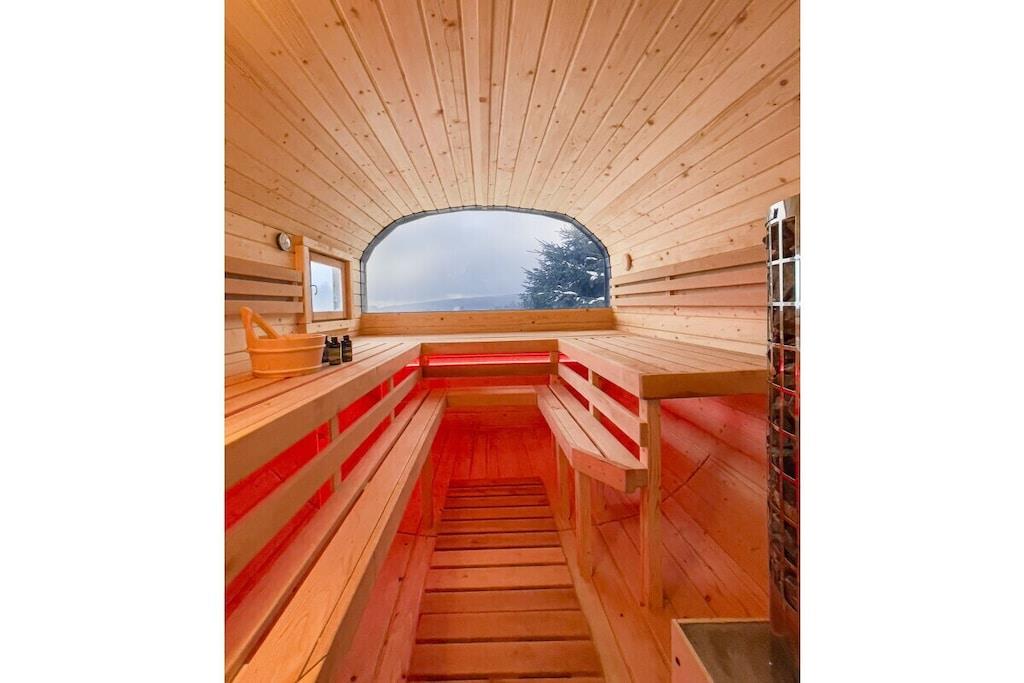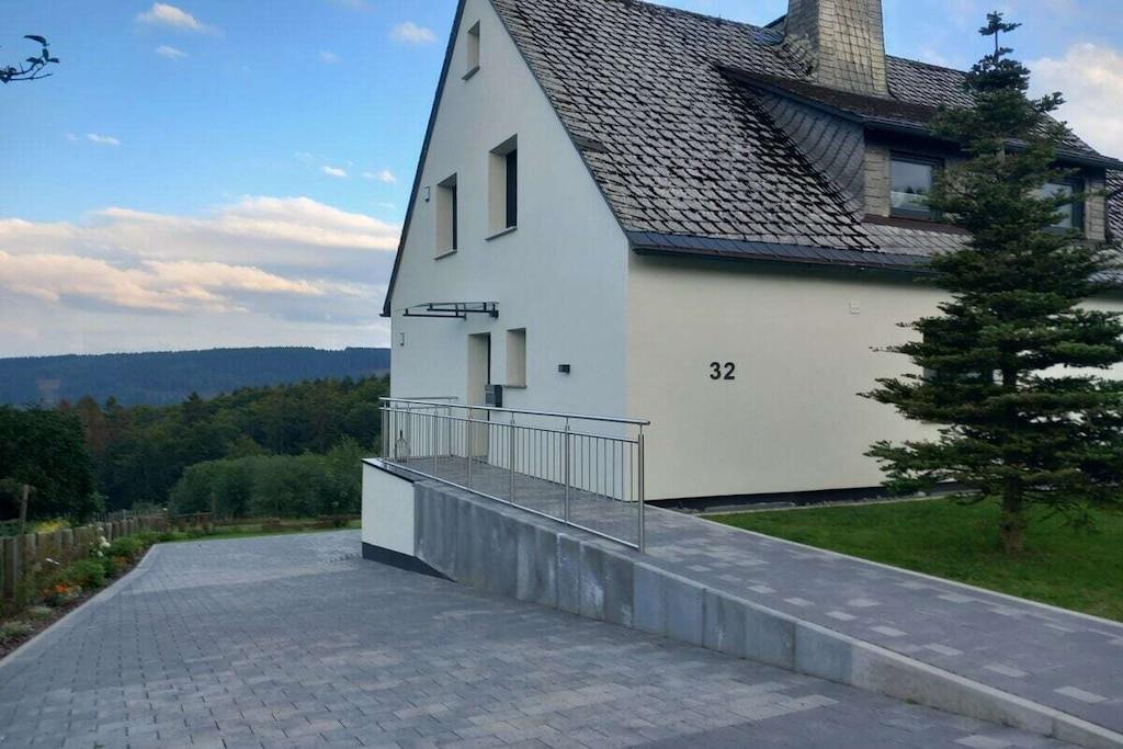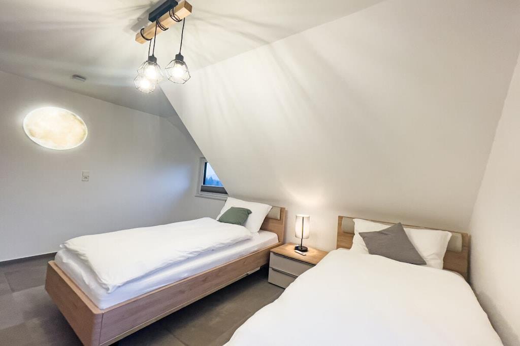 Feriehuset har plads til op til 8 personer med fire soveværelser og tre badeværelser. Stuen indbyder til afslapning, mens et andet værelse er specielt udstyret til børn med legetøj af høj kvalitet. Huset er børnesikret. To wellnessrum giver yderligere afslapning. Sengelinned, håndklæder, kaffebønner og tre kælke er inkluderet. Vi leverer en begrænset mængde brænde; ekstra brænde kan købes på stedet eller medbringes. Hele huset, inklusive wellnessrummene og haven, er til jeres eksklusive brug.