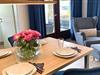 Stue(dobbeltsovesofa, Fjernsyn, spisebord, sofahjørne), Køkken(elkedel, brødrister, komfur, kaffemaskine, ovn, mikrobølgeovn, opvaskemaskine , køleskab), soveværelse(dobbeltseng), badeværelse(bruser, håndvask, toilet, føntørrer), sauna(betalt), vaskemaskine, balkon, parkering, private indoor pool