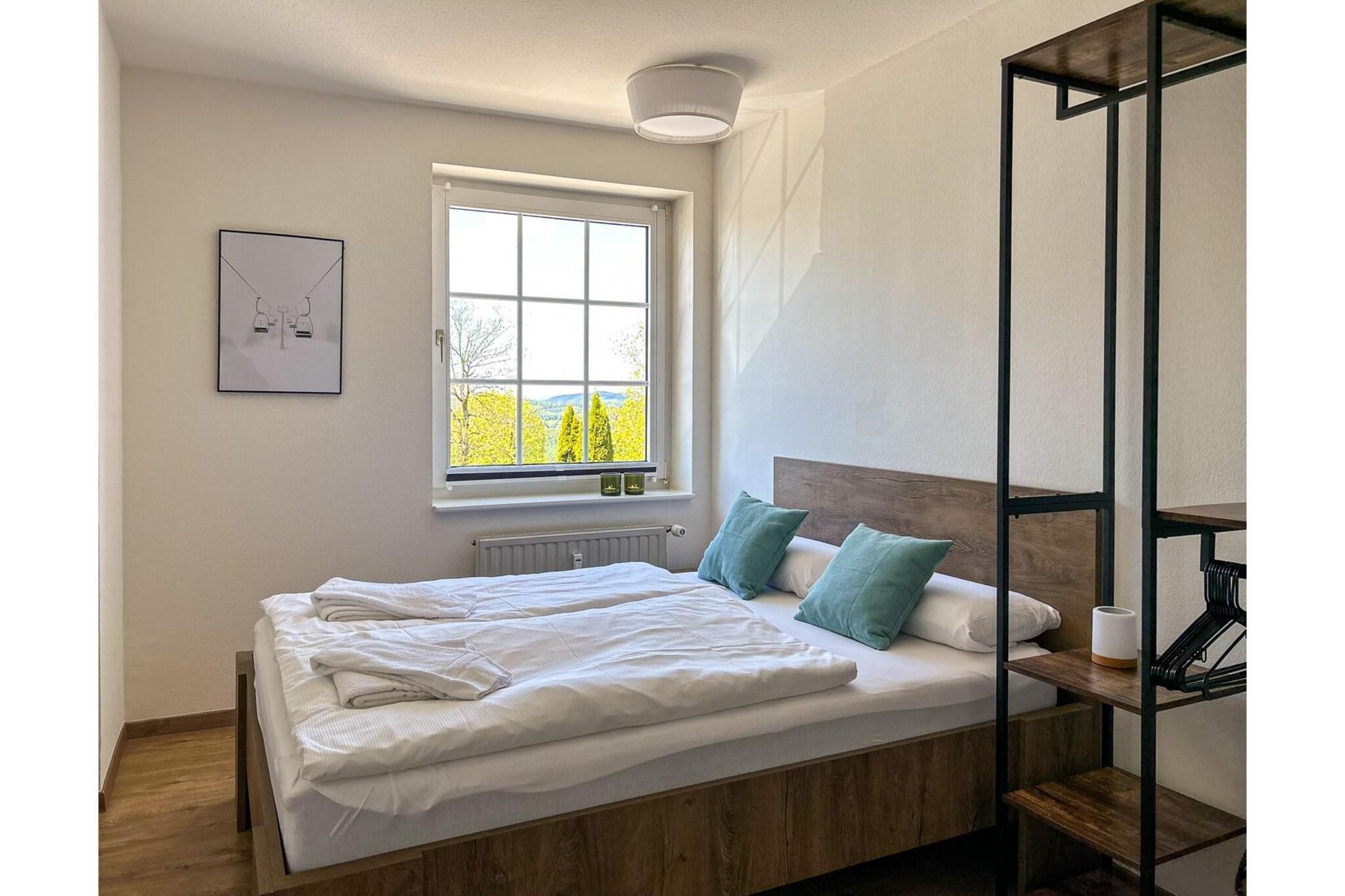 Mellemetage: (åbent køkken(elkedel, brødrister, komfur(Komfur med fire kogeplader), kaffemaskine, ovn, mikrobølgeovn, opvaskemaskine , køle-fryseskab), stue / spisestue(Fjernsyn, spisebord, sofahjørne), soveværelse(dobbeltseng(160 x 200 cm)), soveværelse(dobbeltseng(140 x 200 cm)), badeværelse(bruser, håndvask, toilet, føntørrer), pulterkammer, balkon) havemøbler, parkering, barnestol