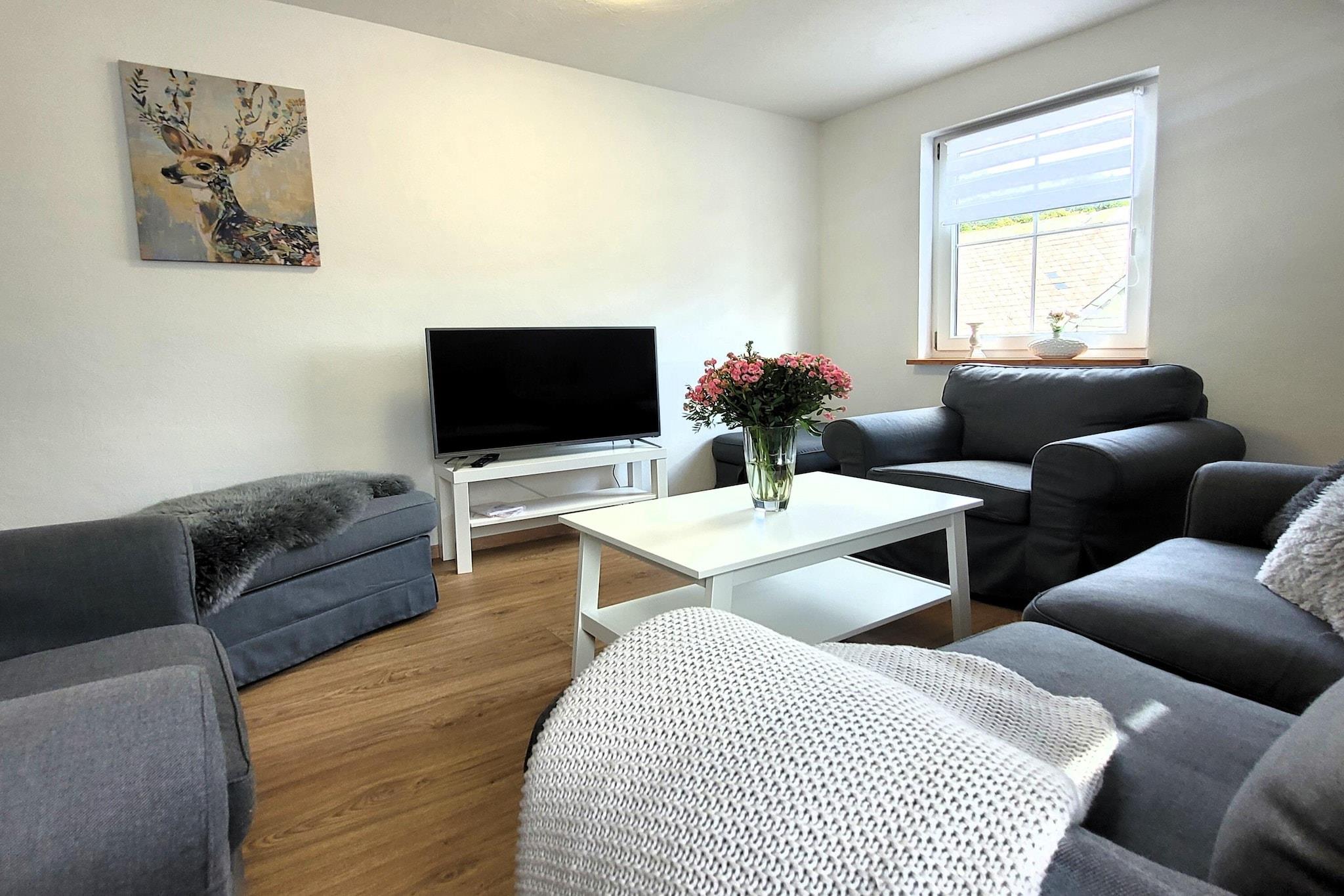 Nyd et komfortabelt og bekvemt ophold i denne indbydende lejlighed beliggende i hjertet af Winterberg, ideel til familier eller to par, der søger et afslappende tilflugtssted. Med to stilfuldt møblerede soveværelser og moderne faciliteter overalt er det den perfekte base for at nyde byen og dens naturskønne omgivelser. Lejligheden har en hyggelig opholdsstue med tv og et spisebord til fælles måltider eller afslappede aftener. Det fuldt udstyrede køkken inkluderer kaffemaskine, brødrister, ovn, mikrobølgeovn og opvaskemaskine - alt hvad du behøver for nemt at tilberede dine yndlingsretter. Begge soveværelser har dobbeltsenge og tv, hvilket giver rigelig komfort og privatliv. Lejligheden har også et hovedbadeværelse med bruser, toilet og hårtørrer, samt et ekstra separat toilet for ekstra bekvemmelighed. Lejligheden ligger kun få minutter fra Winterbergs skiliftkarrusel, bobslædebane og St. Georg-skihopbakken og tilbyder hurtig adgang til udendørsaktiviteter året rundt. Uanset om du står på ski om vinteren eller vandrer og cykler om sommeren, finder du uendelige eventyr i nærheden. Ejendommen inkluderer også en privat garage og parkeringsplads, hvilket gør det nemt at udforske den omkringliggende Sauerland-region i dit eget tempo.