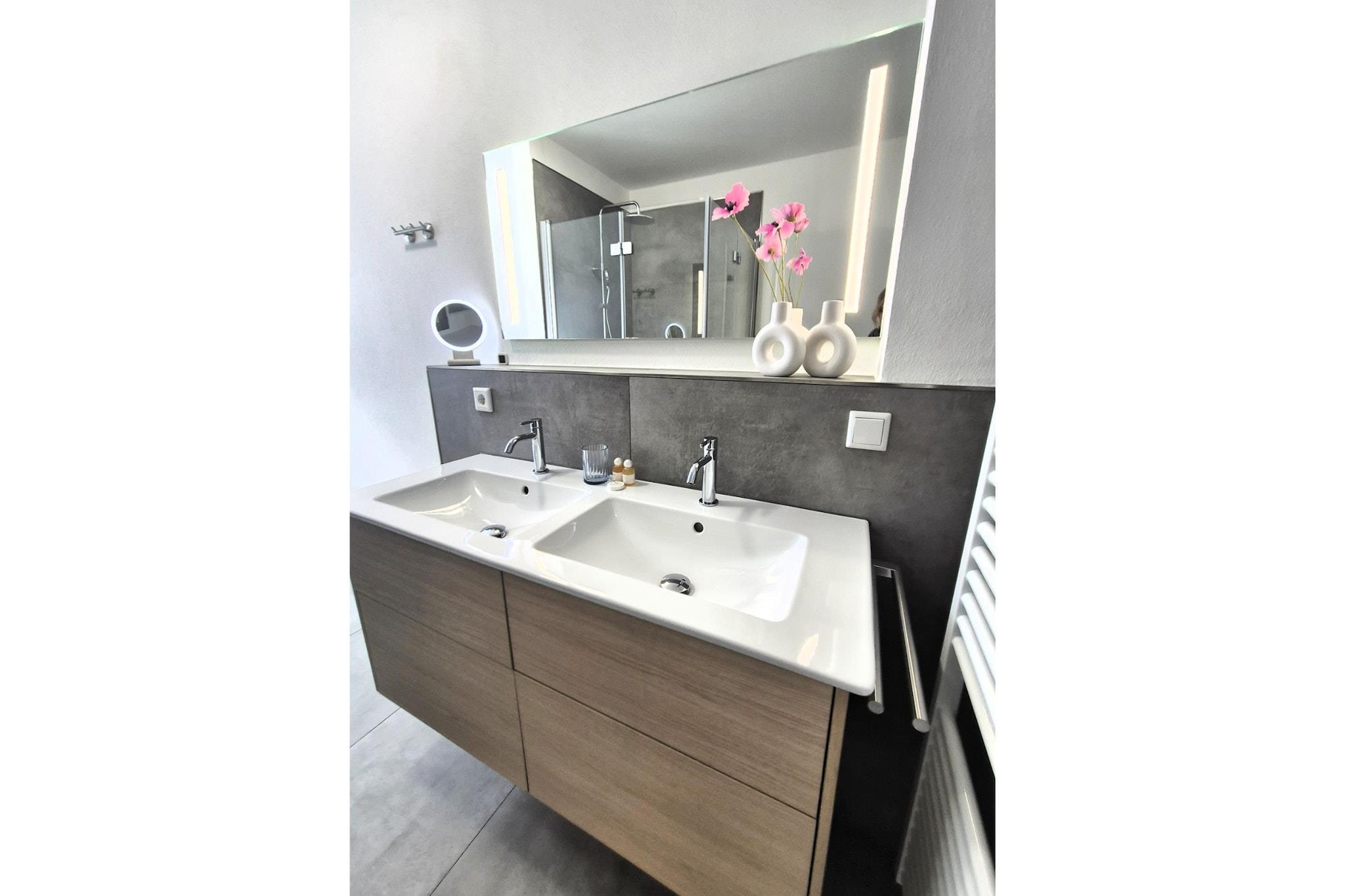 Denne lyse og stilfulde duplexlejlighed ligger roligt, men centralt i Winterberg, kun 500 meter fra skiliftens karrusel og 200 meter fra det charmerende markedsplads, og tilbyder en betagende udsigt over de nærliggende pister samt alle de bekvemmeligheder, der er nødvendige for en afslappende bjergferie. Med 90 m² plads fordelt på to etager byder lejligheden velkommen til op til fem gæster. Stueetagen har en rummelig stue-spisestue med tv, et moderne åbent køkken, der fører ud til en privat balkon, og et stort badeværelse udstyret med et handicapvenligt brusebad, toilet, håndvask og en forfriskende infrarød saunakabine. Ovenpå er der et åbent galleri, der huser et hyggeligt dobbeltværelse med et andet tv (bemærk: dette er et åbent rum), der fører til et andet dobbeltværelse og et tredje værelse med en enkeltseng - perfekt til familier eller små grupper. Gæsterne kan drage fordel af hurtig Wi-Fi og en privat parkeringsplads i den underjordiske garage, som inkluderer et sikkert opbevaringsrum til cykler, kælke, ski og støvler. Uanset om du er på pisterne, vandrer på naturskønne stier eller udforsker de lokale caféer og butikker, er alt, hvad Winterberg har at byde på, lige uden for døren. Et depositum på DEPOSIT_AMOUNT_PLACEHOLDER vil være påkrævet tættere på din indtjekningsdato. Du vil modtage en separat kommunikation med betalingslinket. Depositummet sikrer et problemfrit ophold og dækker yderligere tjenester såsom rengøring, servicegebyrer, forbrug, skader eller andre ekstra omkostninger, der opstår under opholdet. Eventuel saldo fra depositummet vil blive refunderet inden for 21 dage efter udtjekning.