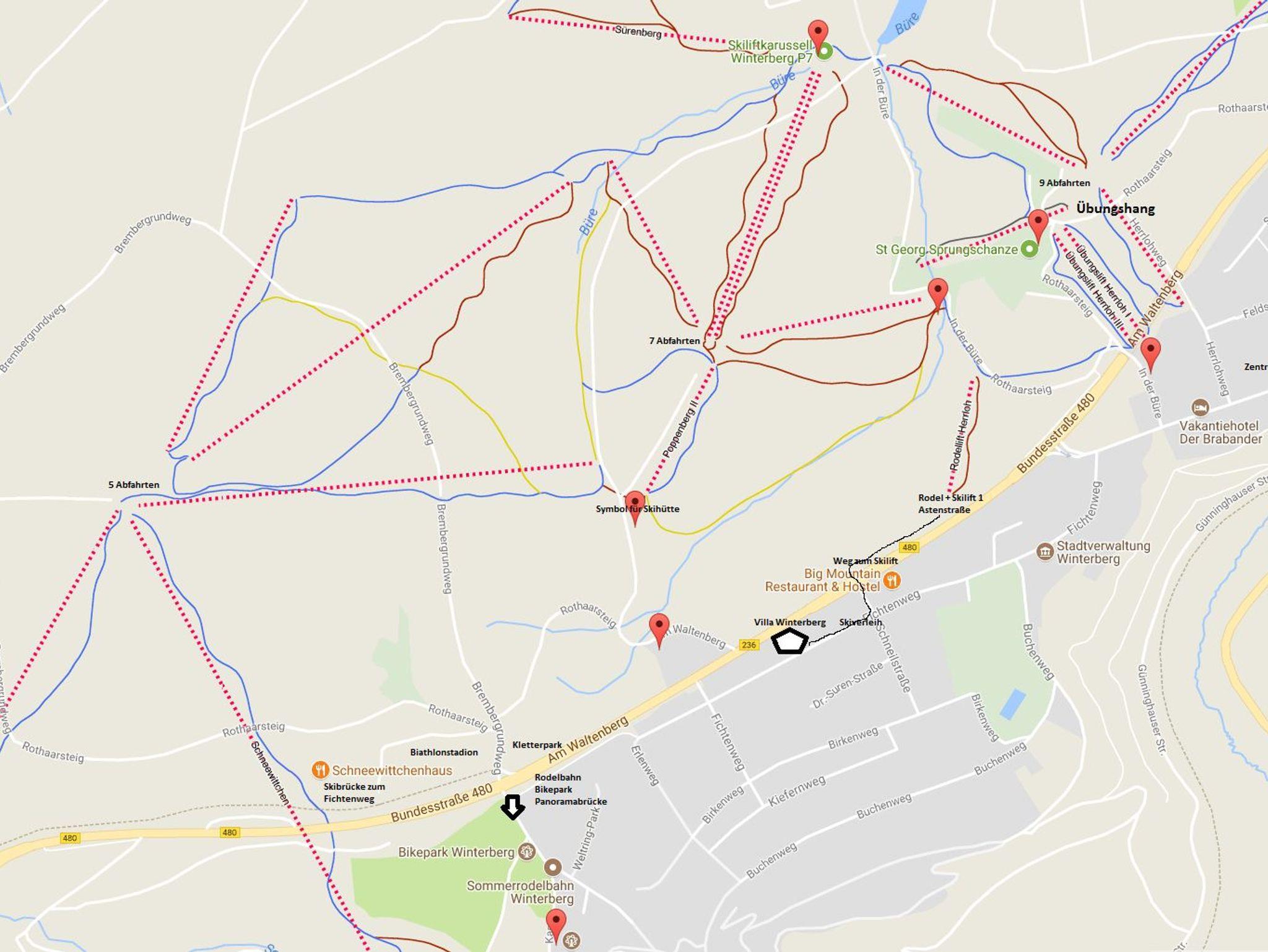 In nur wenigen Gehminuten erreichen Sie sowohl das Winterberger Skikarussell als auch die Bobbahn und die Skisprungschanze. Ein Skiverleih befindet sich direkt am Ende der Straße. In direkter Nähe ist das Biathlon-Stadion mit Schießstand für Ihre ersten eigenen Treffer.