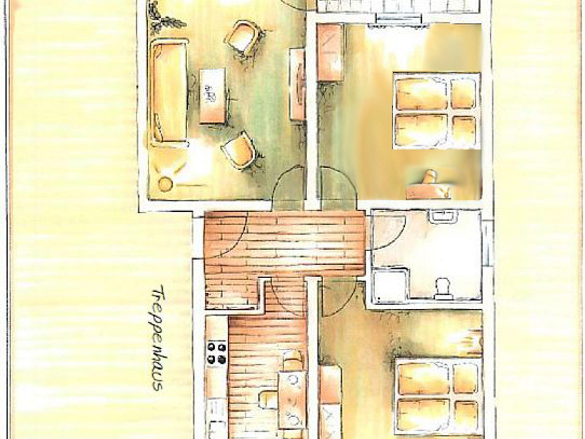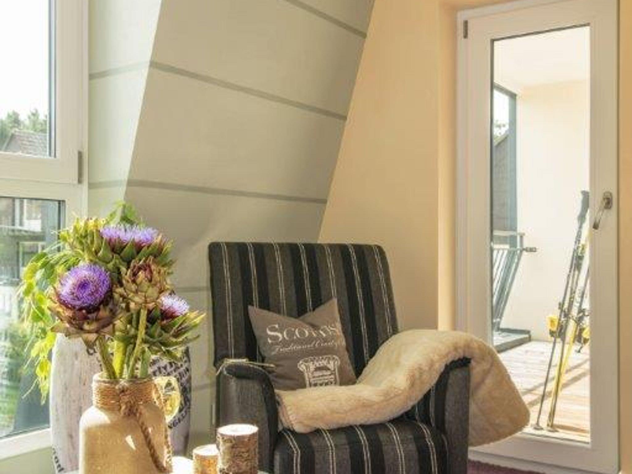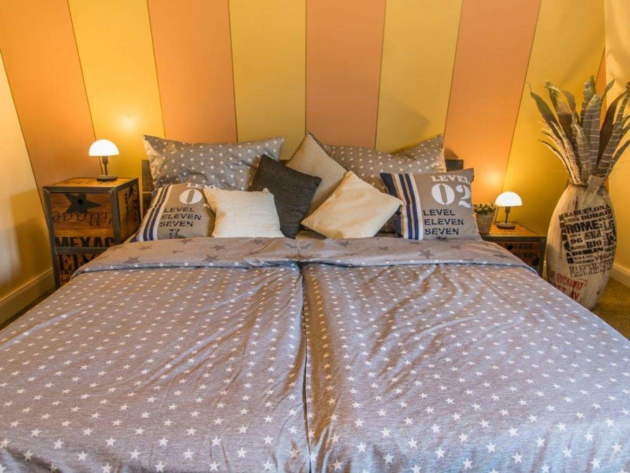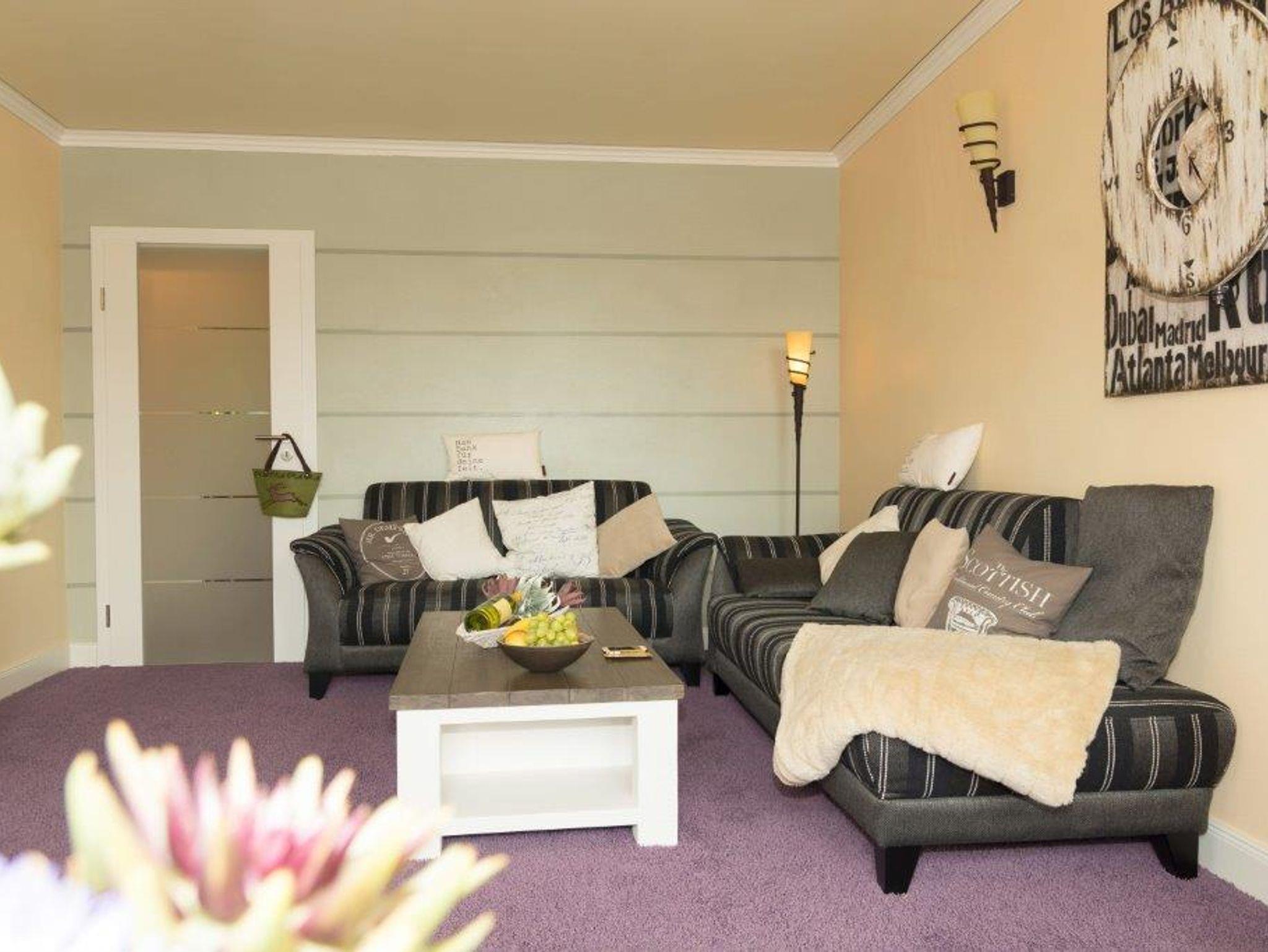 Es erwarten Sie ein Wohnzimmer, 2 Schlafzimmer mit Doppelbett (4 Personen) und Schlafsessel (5. Person), eine Küche mit Esstisch sowie ein Bad und ein Flur. Alles ist gemütlich und modern und somit optimal für Ihren wohlverdienten Urlaub eingerichtet.