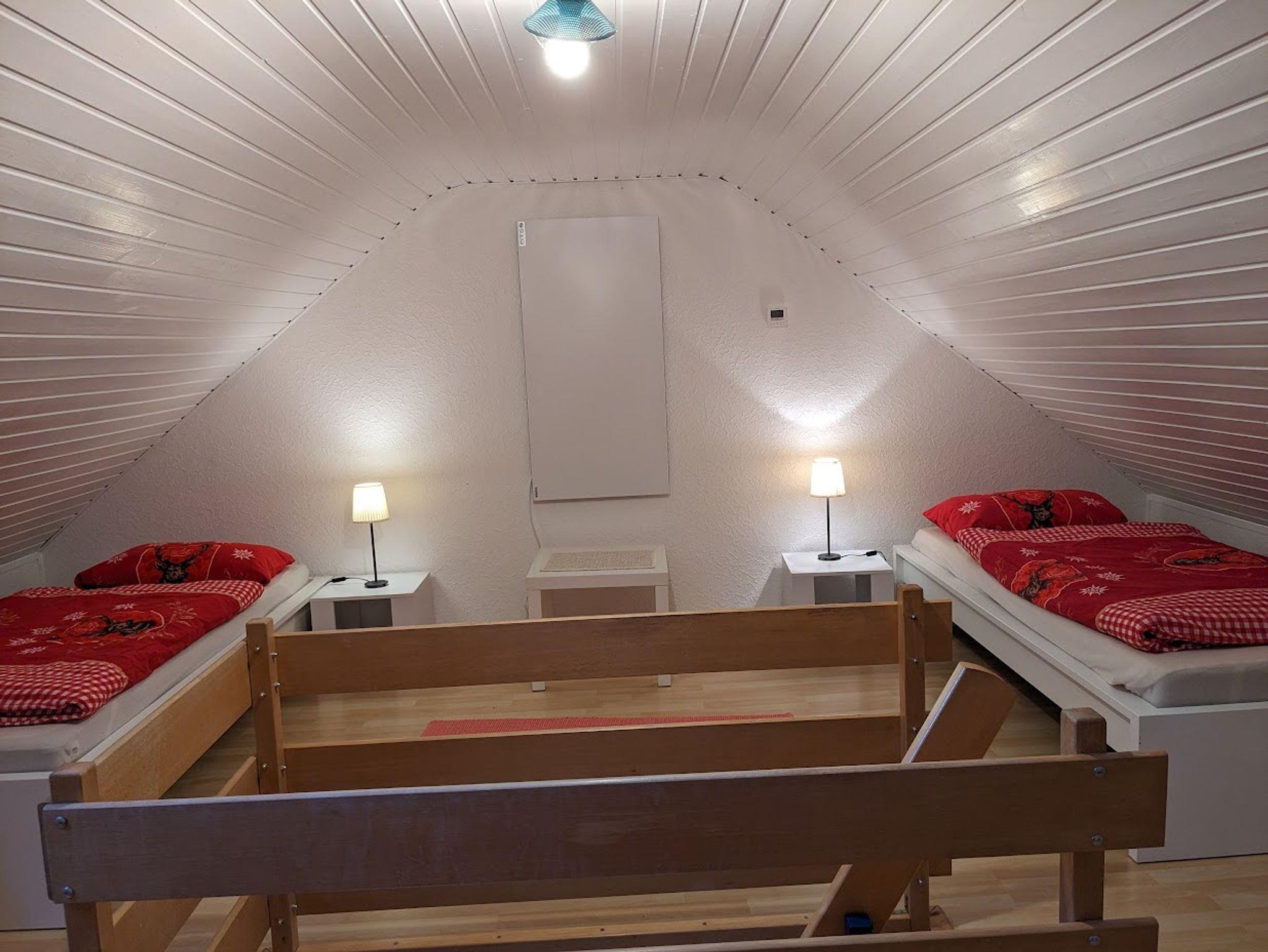 Herzlich willkommen! Beim Einrichten der Wohnung haben wir viel Wert auf Gemütlichkeit gelegt. Die Wohnung erstreckt sich über 3 Etagen. In der Parterre befindet sich das 1. Schlafzimmer (Doppelbett) und das Bad. In der 1. Etage sind Wohnbereich und Küche. Aus dem Wohnzimmer geht eine Treppe ins Dachgeschoss, wo sich das 2. Schlafzimmer (2 Einzelbetten) befindet.