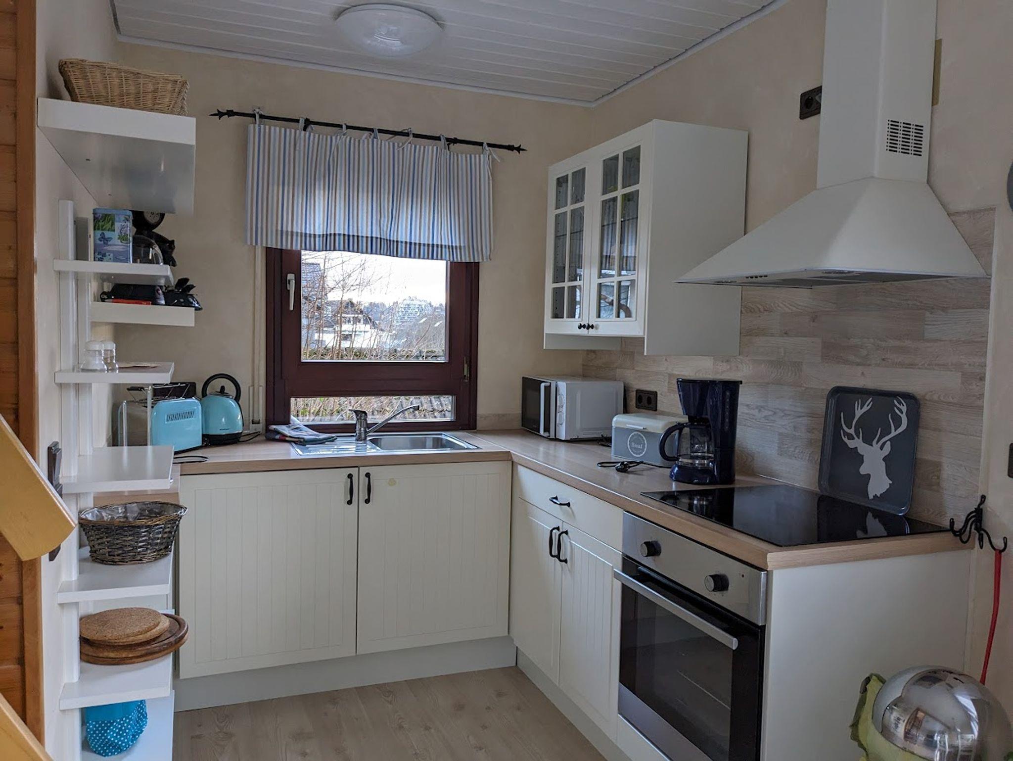 Die Ferienwohnung befindet sich in einem separaten Häuschen mit eigenem Eingang und verfügt über 2 separate Schlafzimmer, ein Bad mit Dusche/WC, einen Wohnbereich und eine offene Küche.