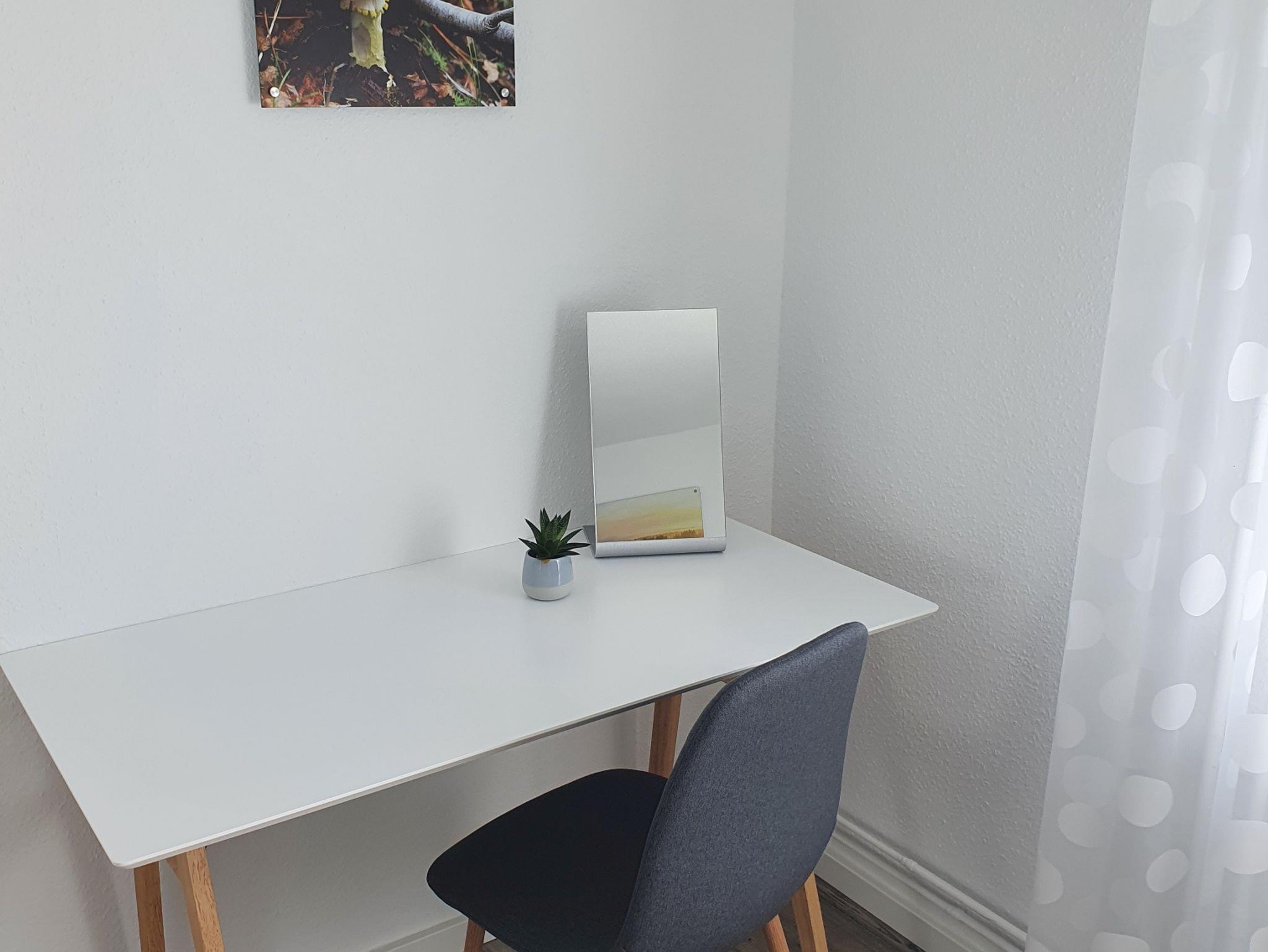 Im Wohn-/Esszimmer findet sich eine geräumige Essecke, sowie ein Sofa auf dem man es sich für Fernsehabende gemütlich machen kann. Das Smart-TV bietet Kabelfernsehen und Zugang zu den üblichen Streamingdiensten (bei Nutzung Ihrer persönlichen Zugangsdaten)