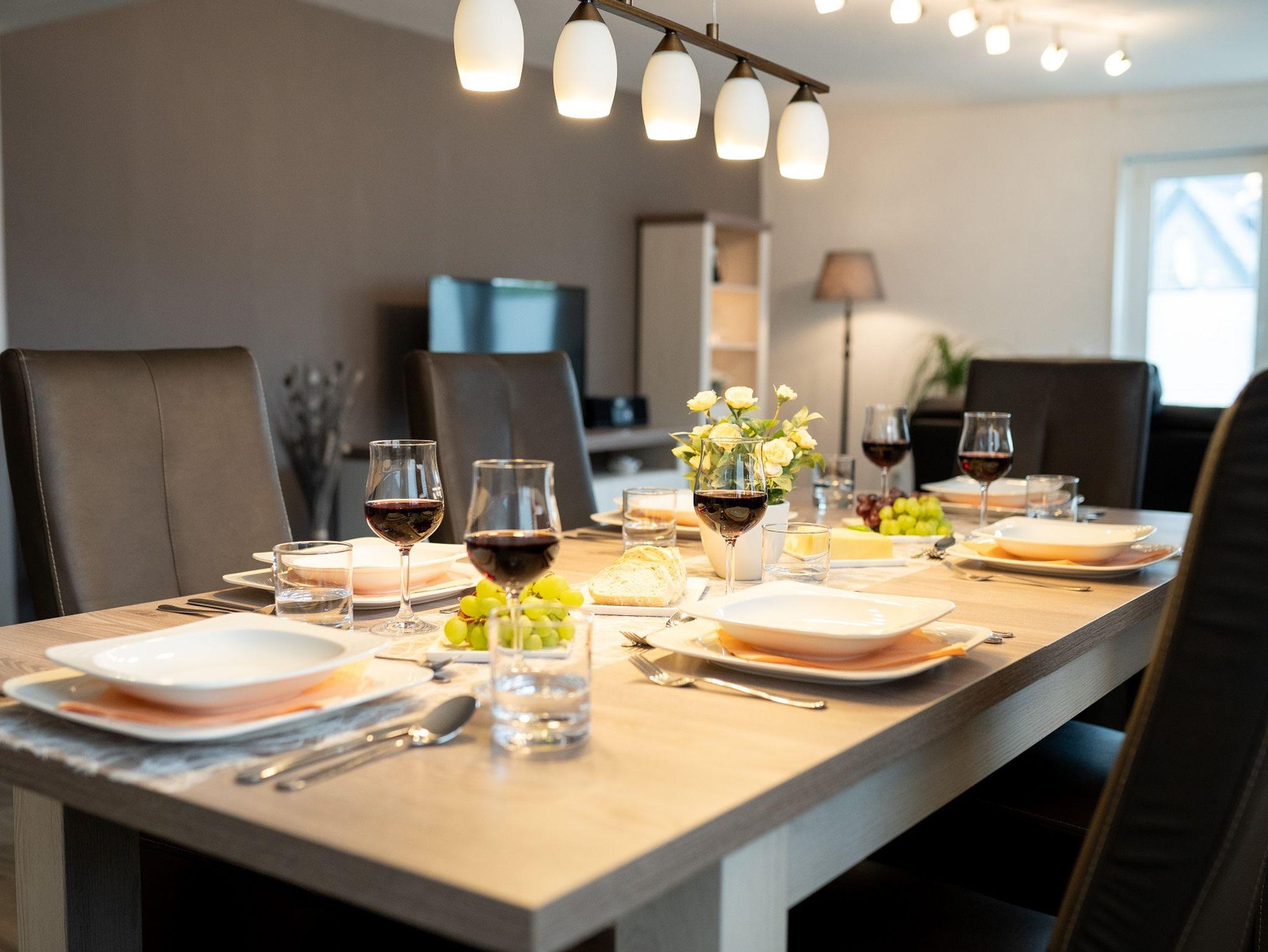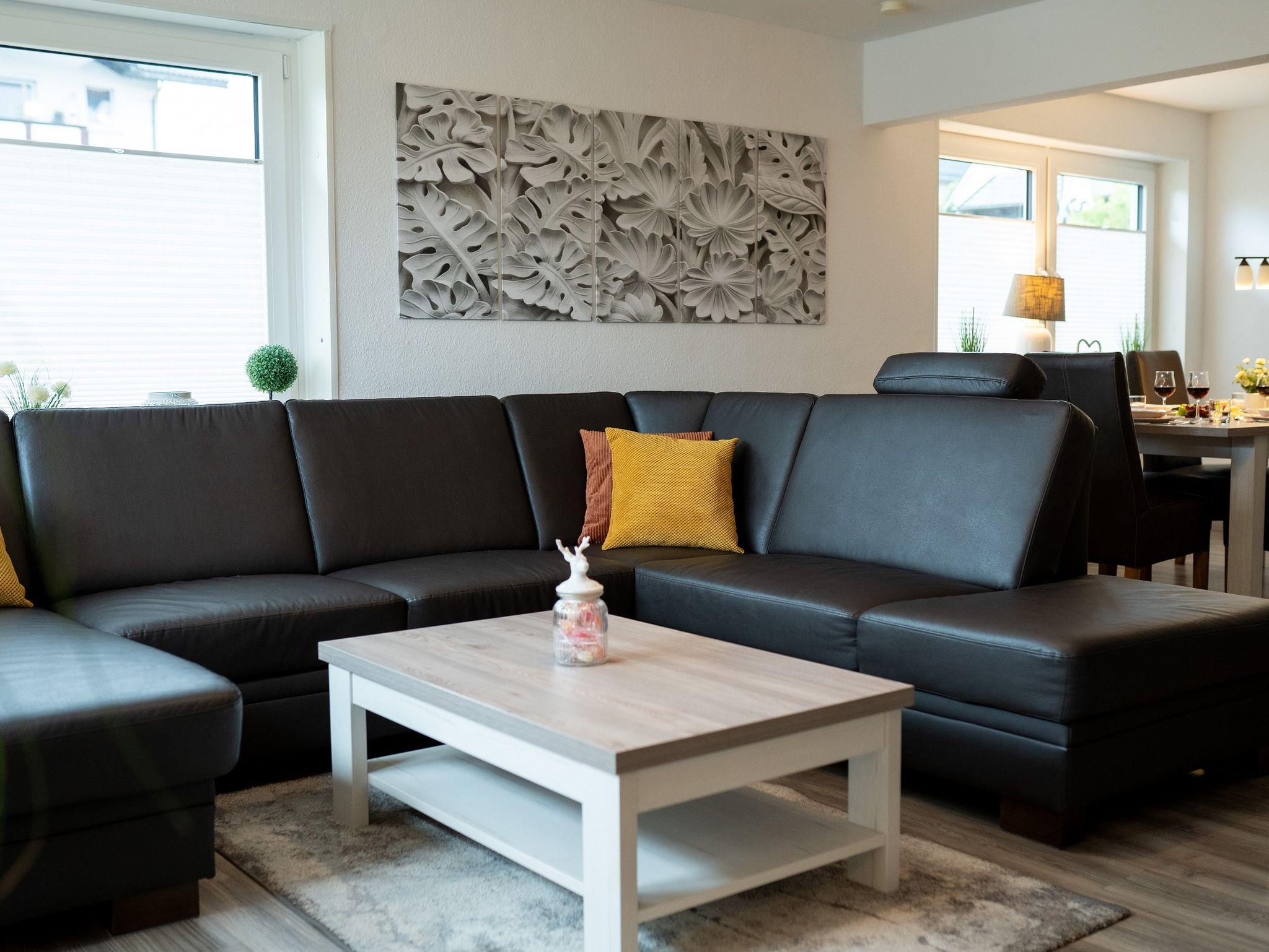Im großen Wohnraum ist reichlich Platz für die ganze Familie oder den Freundeskreis. Drei Schlafzimmer mit bequemen Boxspringbetten sowie ein edel ausgestattetes Tageslichtbad mit Dusche plus zusätzliches Gäste-WC stehen unseren Gästen zur Verfügung. An kühlen Tagen fühlen Sie sich rundum wohl am Pellet-Ofen. Ein großer Flachbild-Fernseher und kostenloses WLAN optimieren Ihren Aufenthalt.