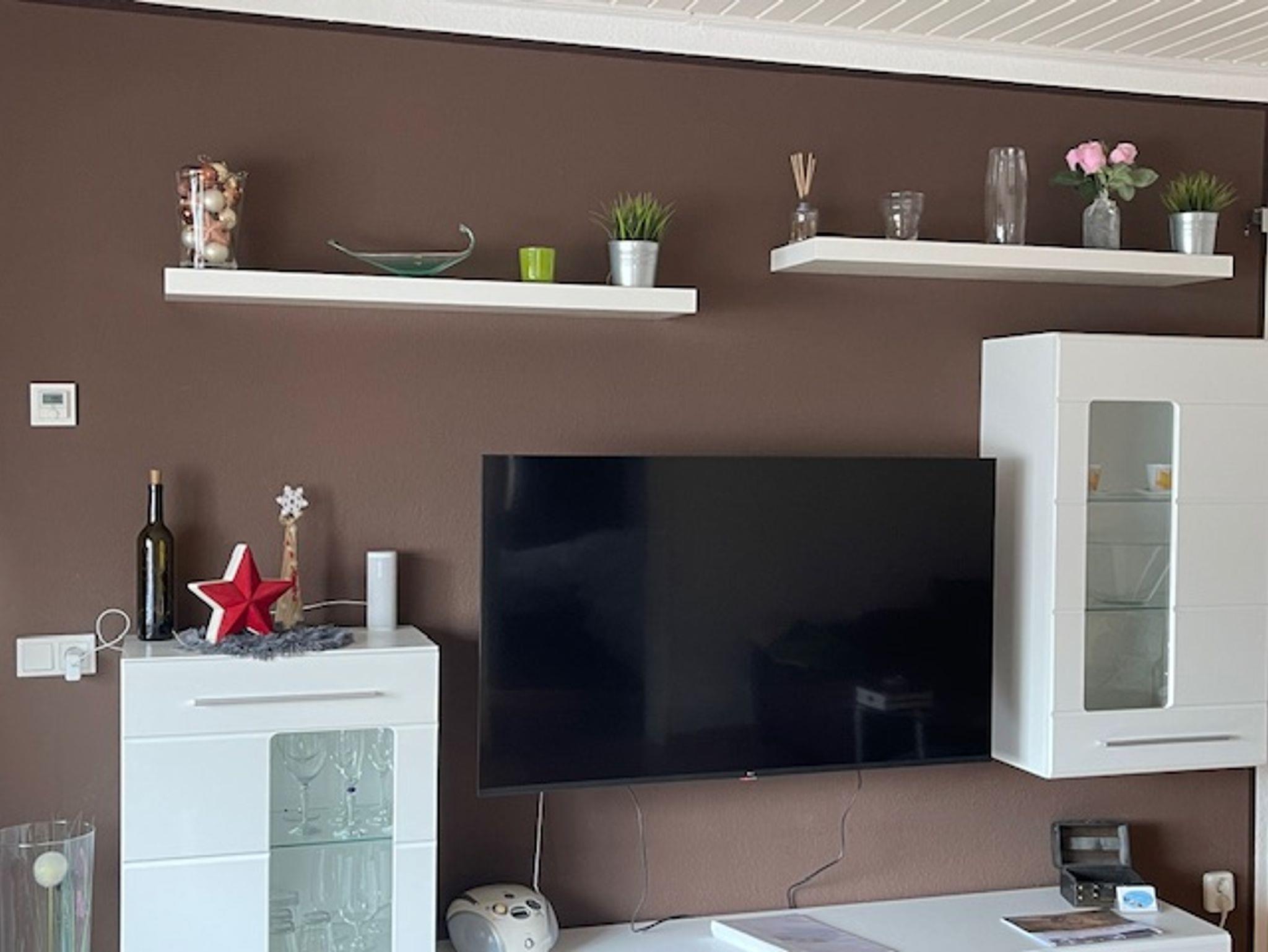 Das gemütliche Wohnzimmer mit Ecksofa und Flachbild-TV lädt zum Verweilen ein.