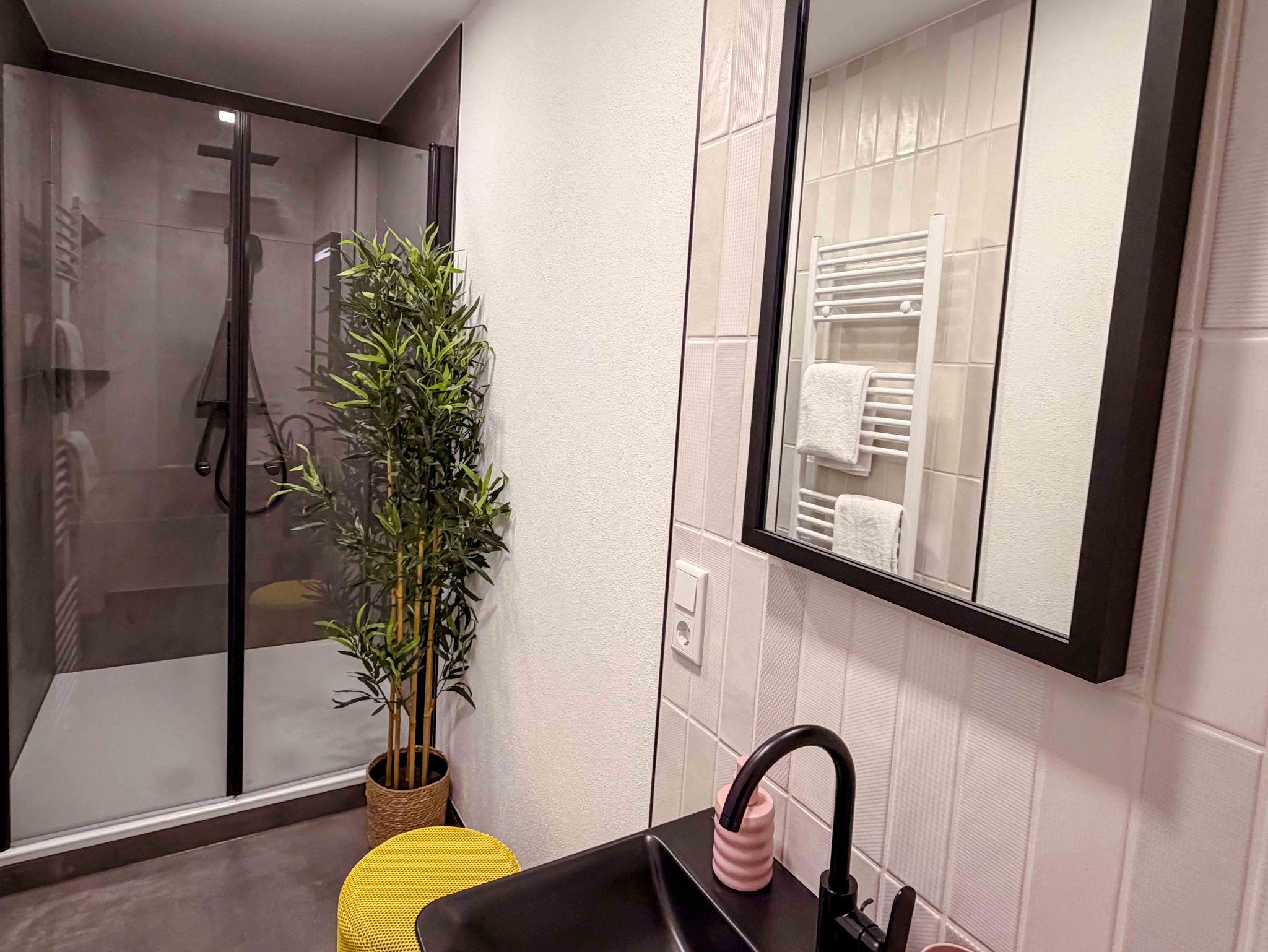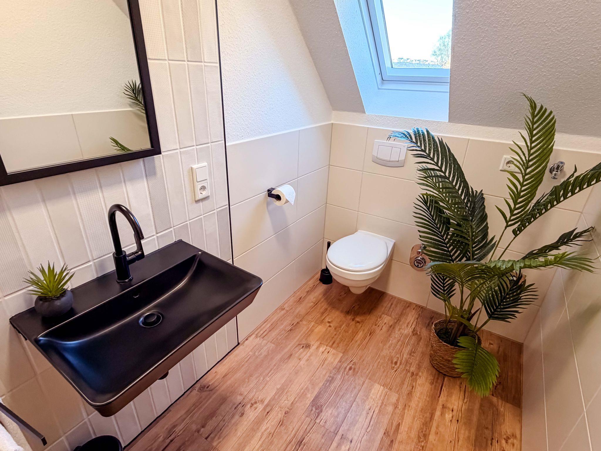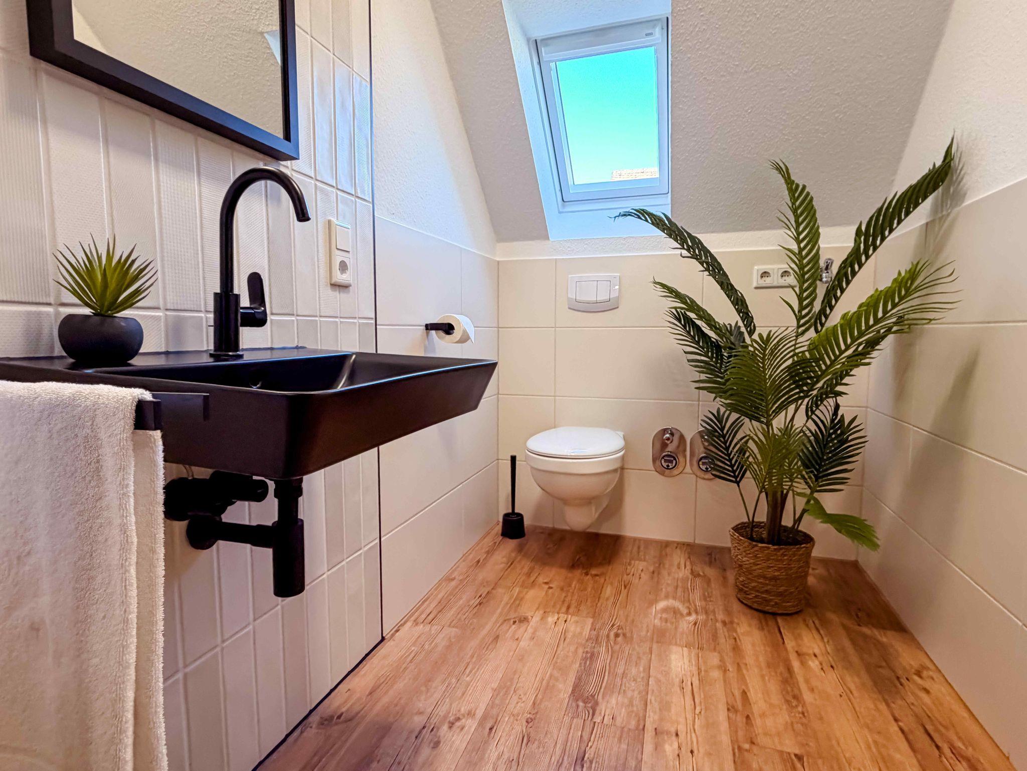Das Hauptbad wurde komplett neu renoviert und überzeugt mit klaren Linien, modernen Armaturen und einem sehr gepflegten, zeitlosen Stil. Zusätzlich gibt es ein separates Gäste-WC in einem eigenen kleinen Raum – gerade bei mehreren Personen ein echter Komfortgewinn.