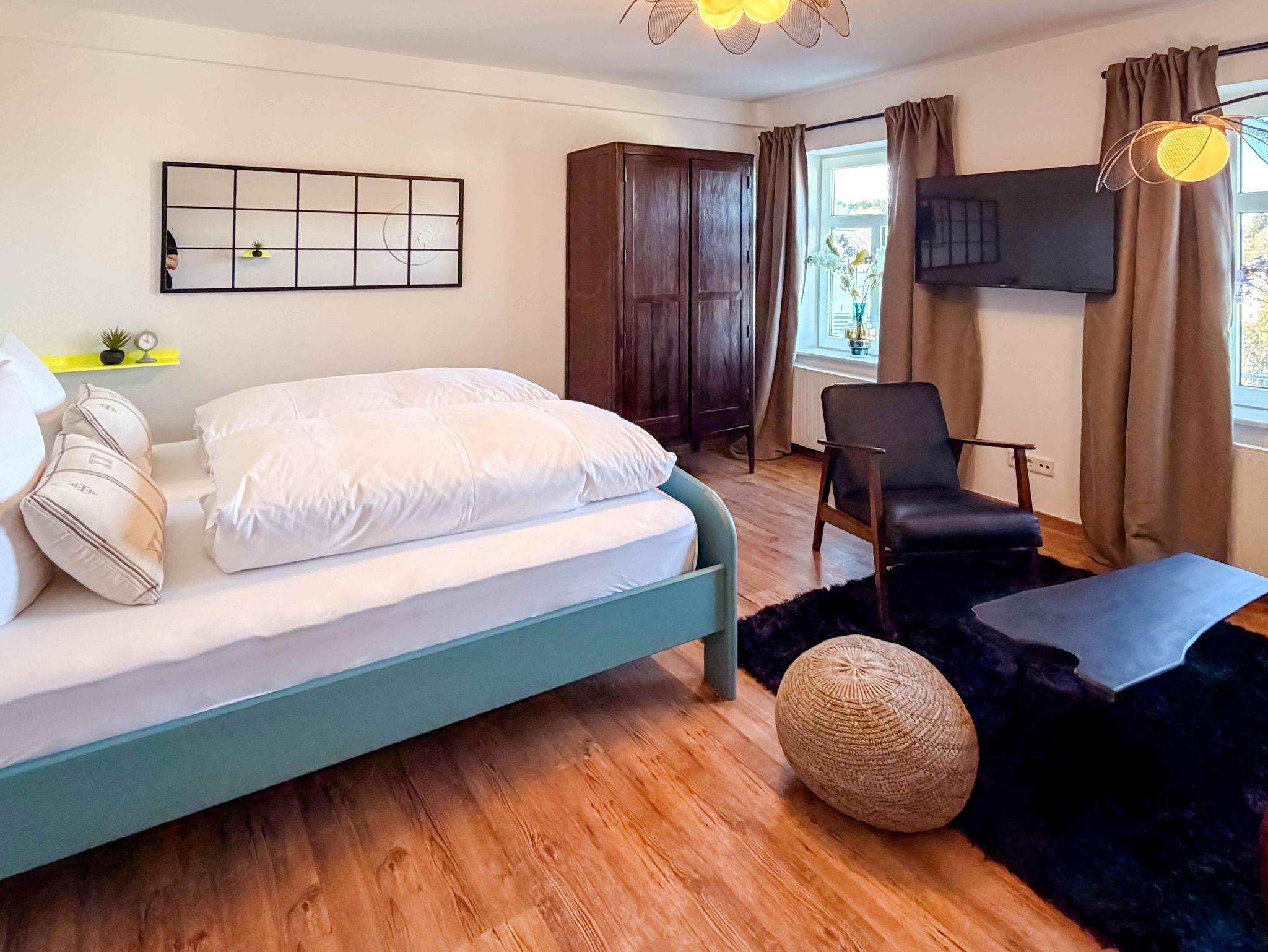 Die Wohnung bietet zwei separate Schlafzimmer, geschmackvoll eingerichtet, ruhig gelegen und ideal für erholsame Nächte. Hochwertige Betten, warme Farben und viel Tageslicht sorgen dafür, dass man sich vom ersten Moment an wohlfühlt.