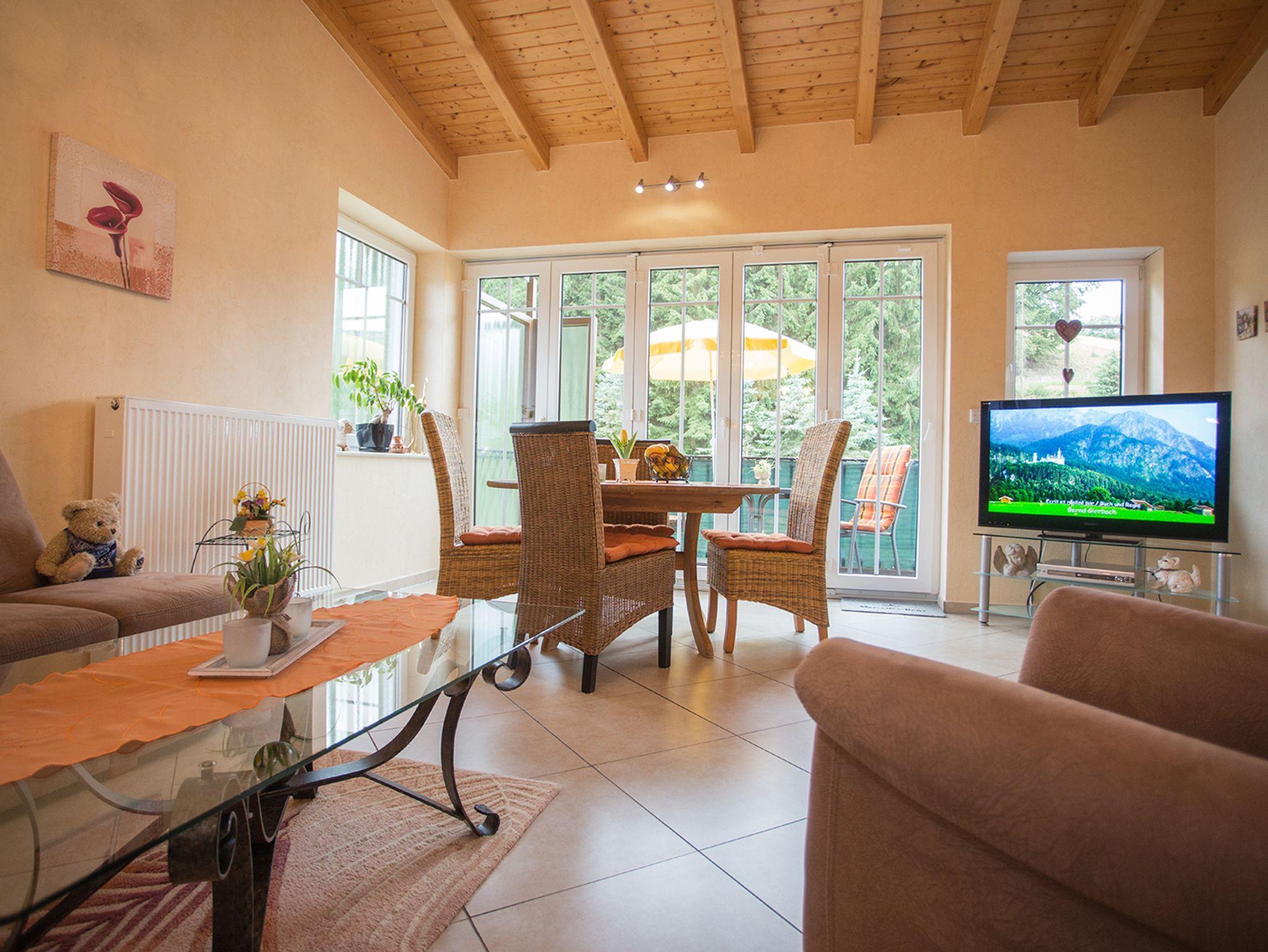 Ferienwohnung Haus Edelweiss, FeWo Edelweiss (90qm) mit Kamin, großem Wohnzimmer, Balkon und Fußbodenheizung im Bad