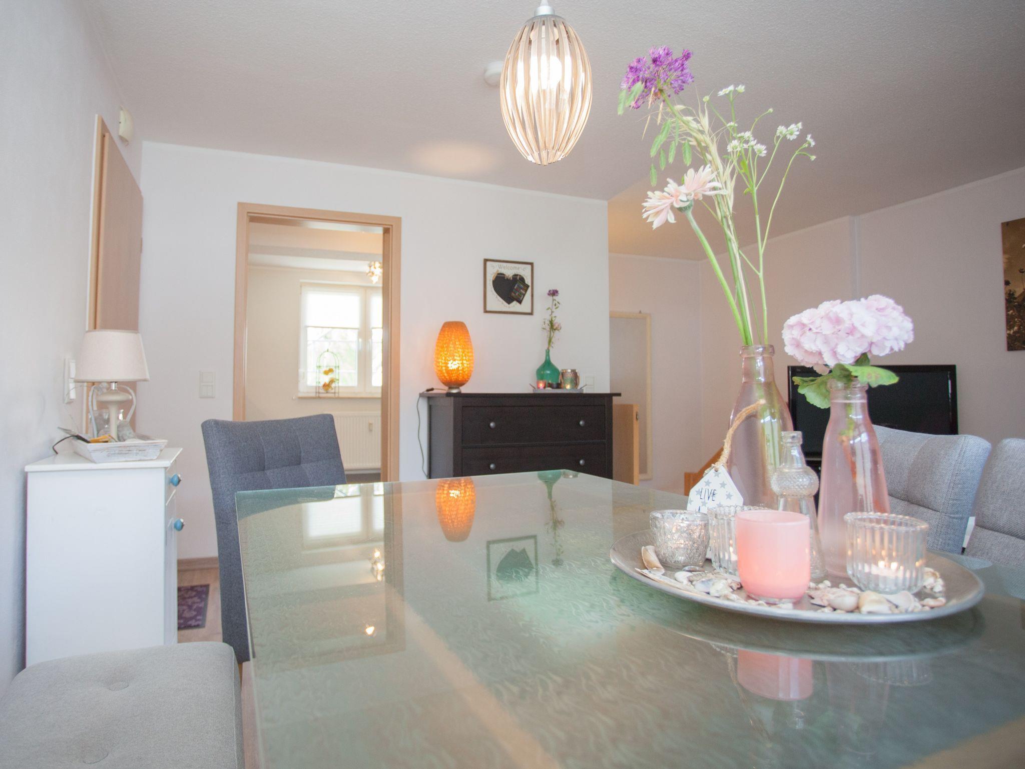 Ankommen und Wohlfühlen! Die familienfreundliche und gemütliche Fewo befindet sich im Anbau des Haupthauses in einer ruhigen Wohngegend. AKTUELL: Da uns Ihre Gesundheit wichtig ist, haben wir uns nach der Orientierungsrichtline des DTV einen Hygienestandard für unsere Ferienwohnung erarbeitet und diesen bereits umgesetzt.