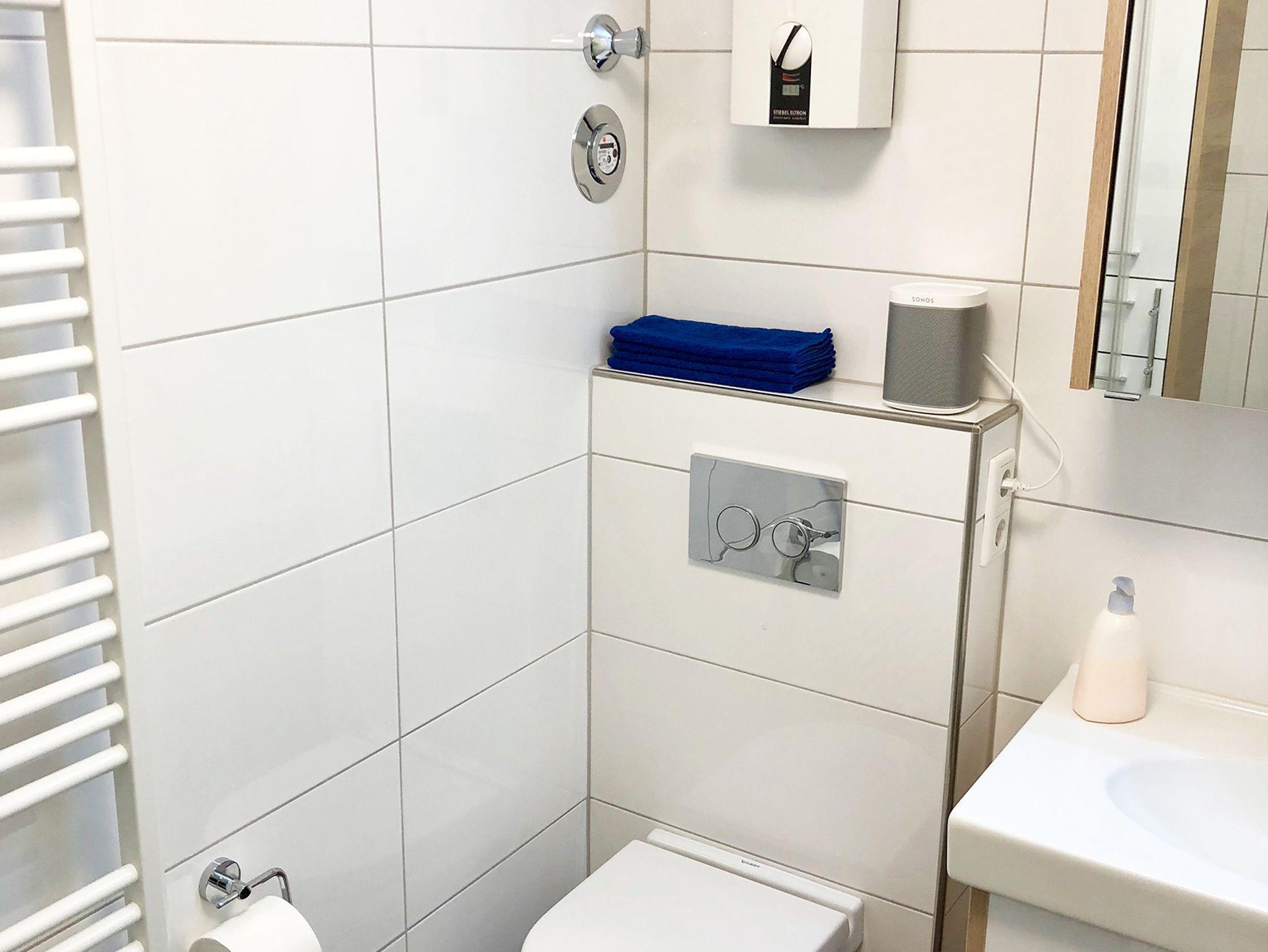 In den Schlafzimmern sowie im Wohnzimmer haben wir für Sie Flachbildschirm-TV mit deutschen und internationalen Programmen installiert. W-LAN ist in allen Räumen verfügbar. Ein Sonos-Soundsystem befindet sich zudem im Wohnzimmer und im hell gefliesten Bad.