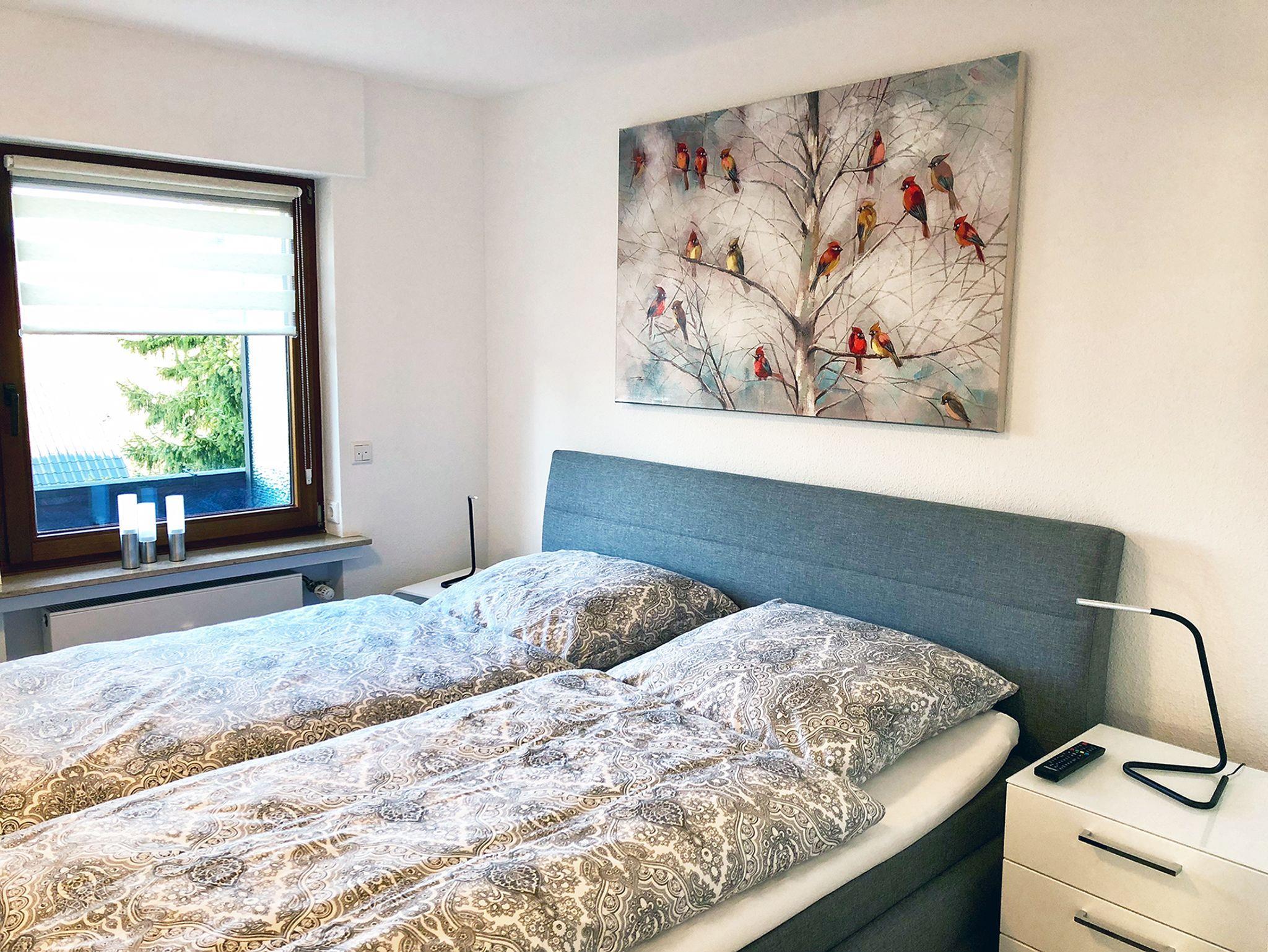 Unsere 64 Quadratmeter große Ferienwohnung in der ersten Etage hat Platz für zwei bis vier Personen und ist mit allem Komfort ausgestattet. Ein heller Boden, luftig weiße Wände und moderne Möbel, liebevoll mit farbigen Akzenten abgerundet, zaubern ein freundliches Ambiente. Die voll ausgestattete große Wohnküche verfügt über Annehmlichkeiten wie eine Senseo-Padmaschine, Kaffeemaschine, Backofen, Ceranfeld, Mikrowelle und Kühl-Gefrier-Kombi.