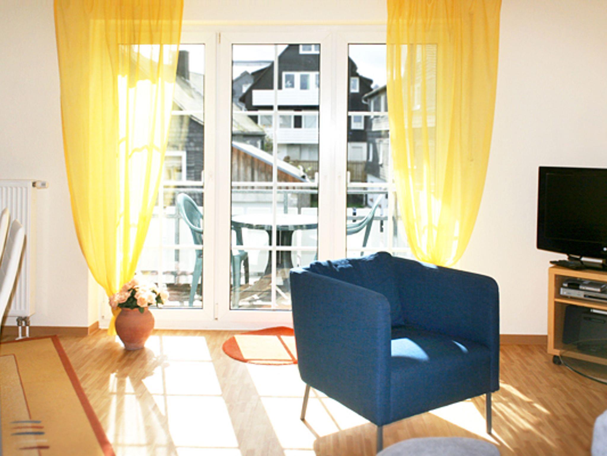 Komfortabel eingerichtete Ferienwohnung im Wintersportort Winterberg. Die 45 Quadratmeter große Wohnung in der ersten Etage bietet Platz für zwei Personen und besteht aus einem Wohnzimmer mit Küchen- und Essbereich, einem Schlafzimmer mit Doppelbett sowie einem Wannenduschbad. Im hellen Wohnzimmer finden Sie einen LCD – Flachbildfernseher (Digitales Kabel – TV) mit einem Blu – Ray / DVD Player sowie eine kleine Hi- Fi – Anlage. Die funktionale Küchenzeile mit Geschirrspüler, Kühlschrank und Gefrierfach ist mit allem Notwenigen ausgestattet. Im Sommer lädt der große Südbalkon mit Tisch und Stühlen zum Frühstücken in der Sonne ein. Alle Fenster sind mit Rollläden versehen. Die Ferienwohnung ist eine Nichtraucherwohnung, gerne können Sie aber zum Rauchen den Balkon nutzen. Ein Kinderbett und einen Hochstuhl können gerne bei Bedarf zugestellt werden. Unseren Gästen steht ein kostenloser Internetzugang (WiFi) sowie ein PKW-Parkplatz vor dem Haus zur Verfügung.