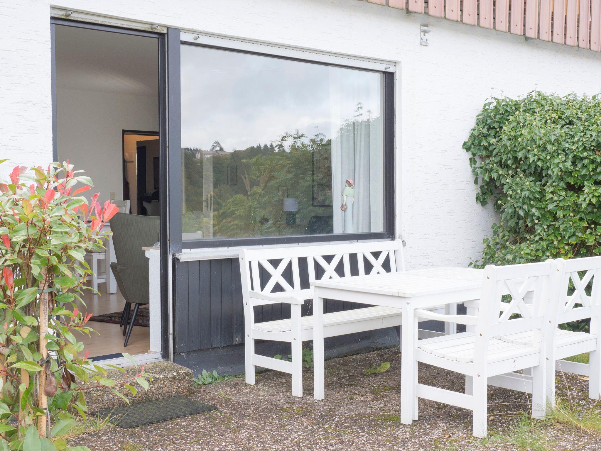 Auf der Terrasse mit zugehörigem Gartenanteil kann man schöne Stunden verbringen.