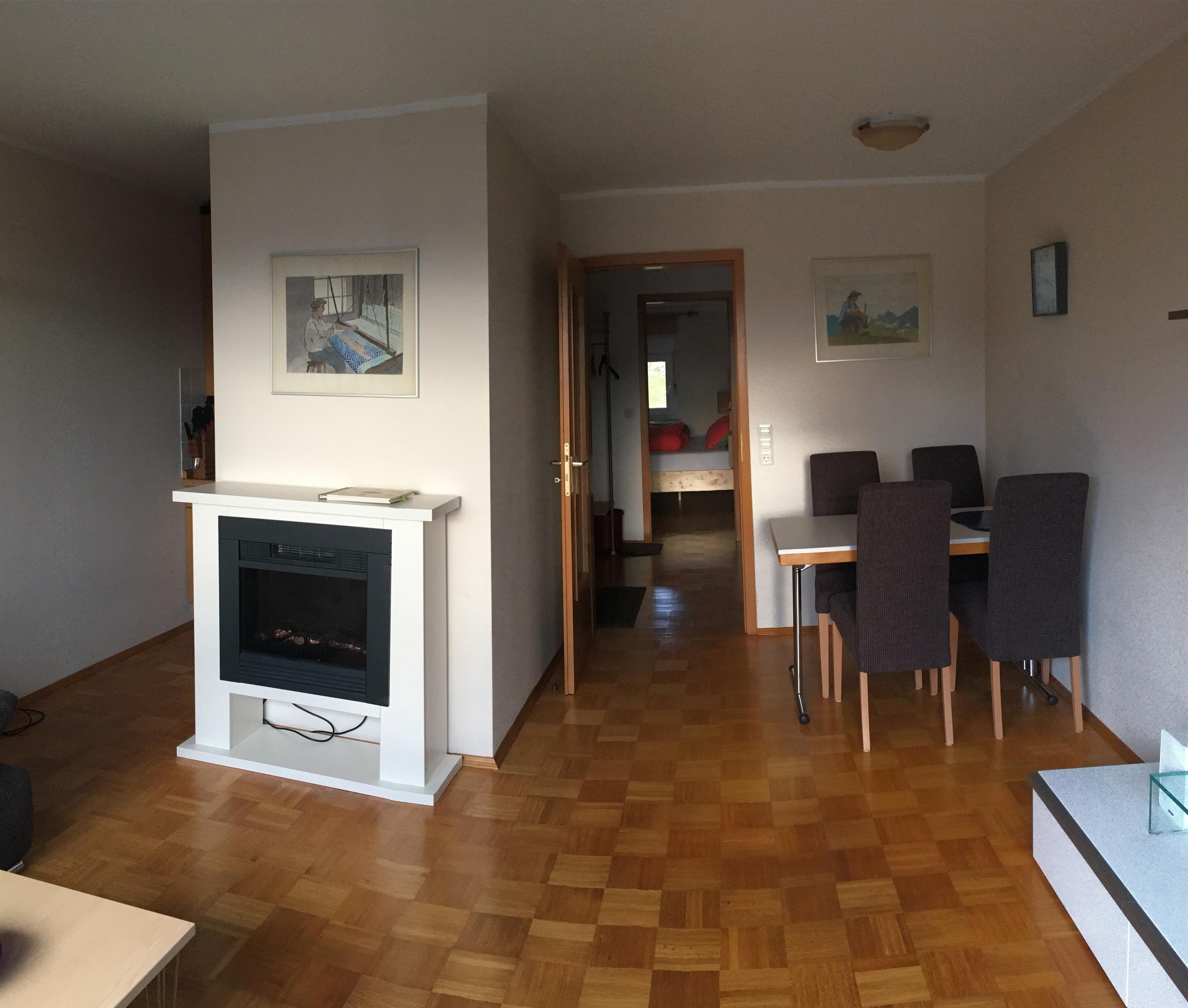 Von der Diele erreichen Sie alle Räume. Wohnzimmer mit Ess- und Couchecke, elektr. Kamin, Sat TV Flachbildschirm, HiFi, WLAN, Telefon (dt. Festnetz). Ein wenig abgetrennt die Einbauküche mit 4-Kochplatten-Ceranfeld, hochwertigem Backofen und Kühlschrank, beide ausziehbar. Pads-Kaffeemaschine, Wasserkocher, Toaster.
