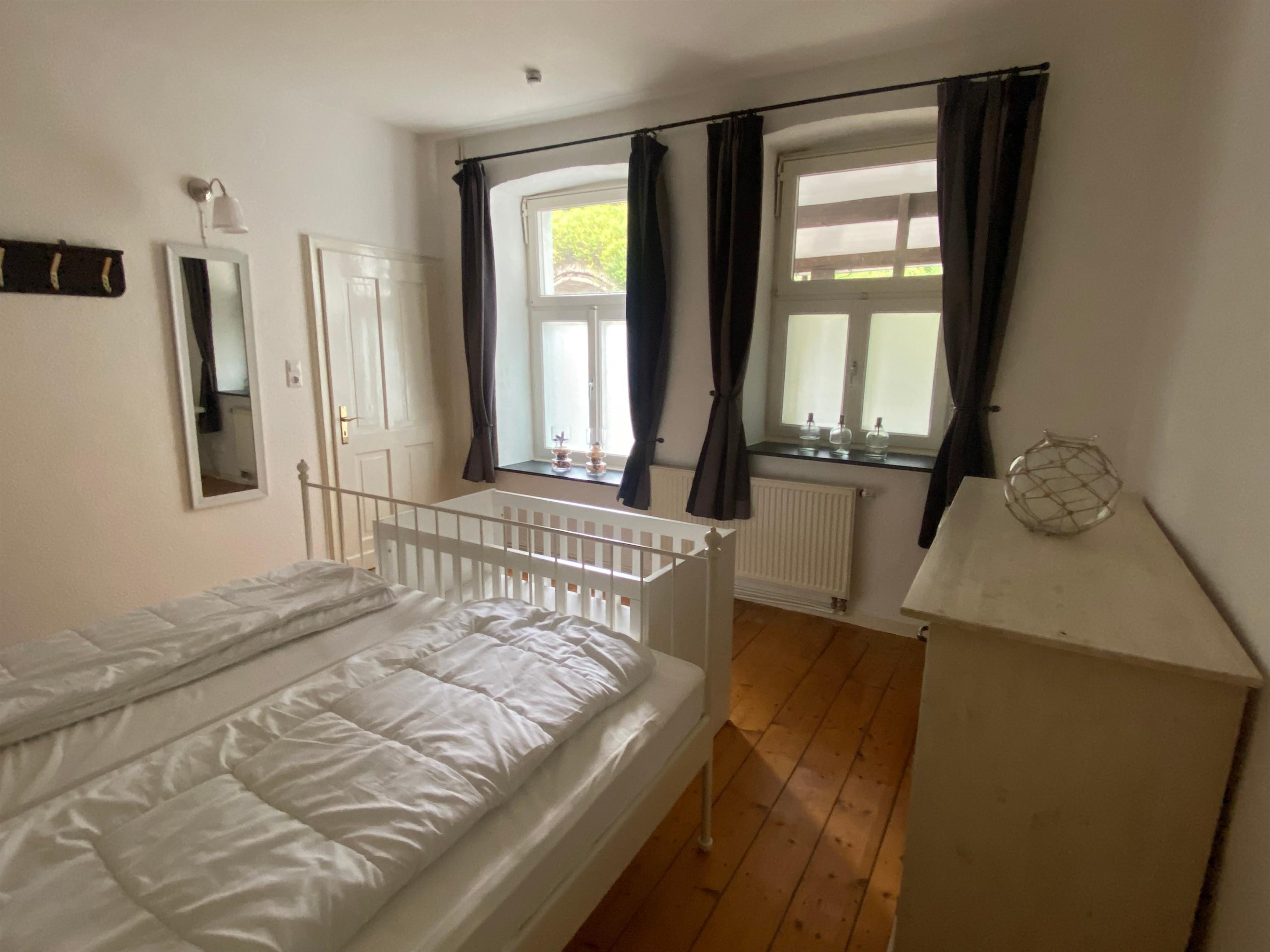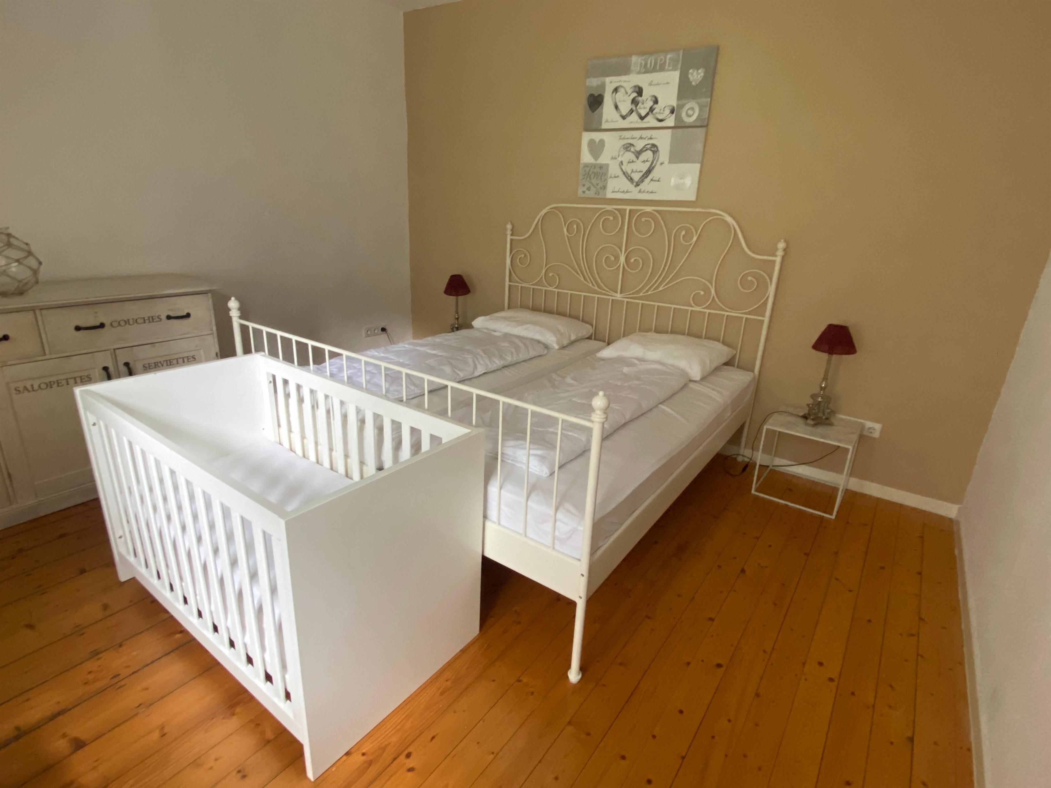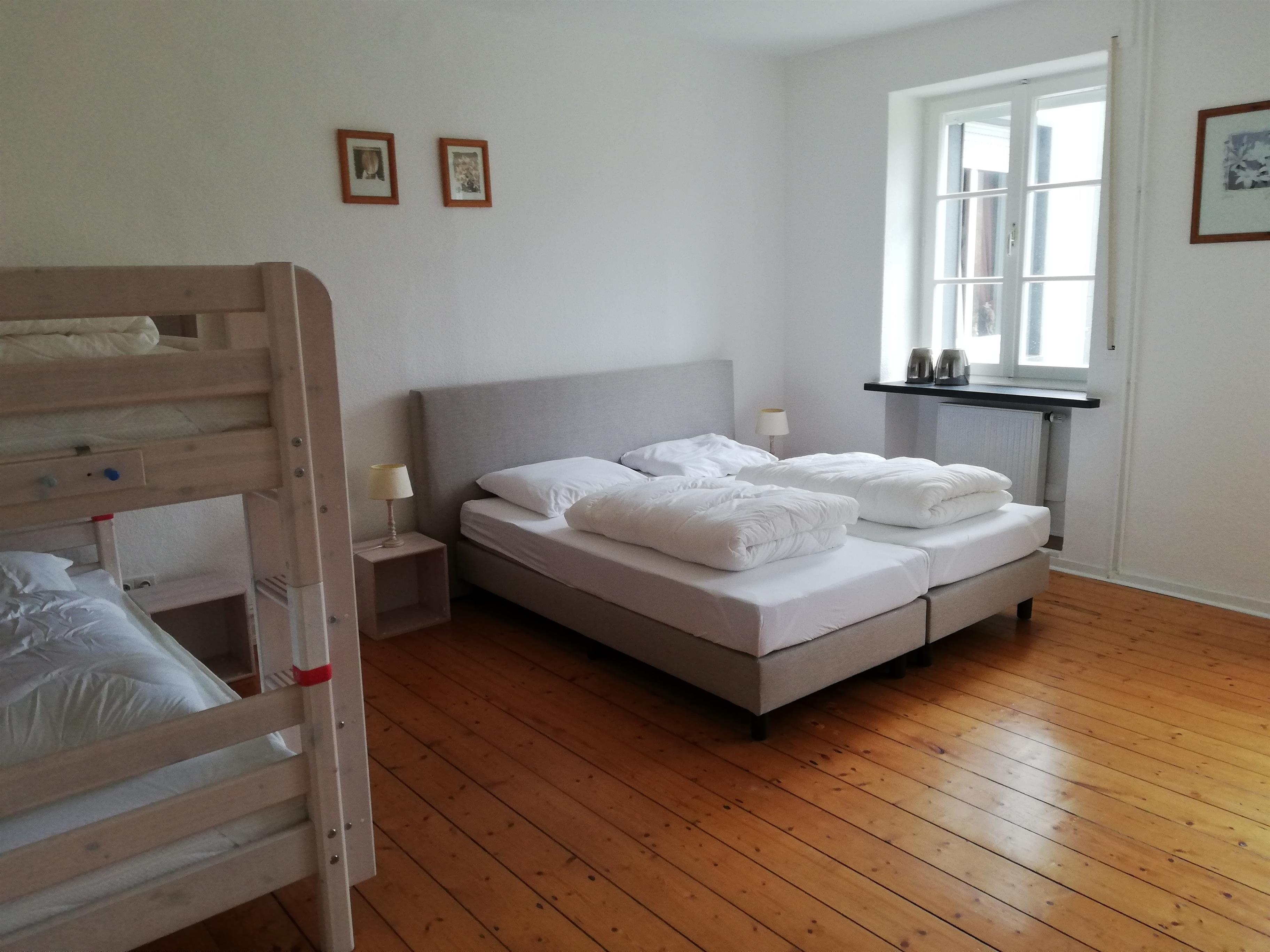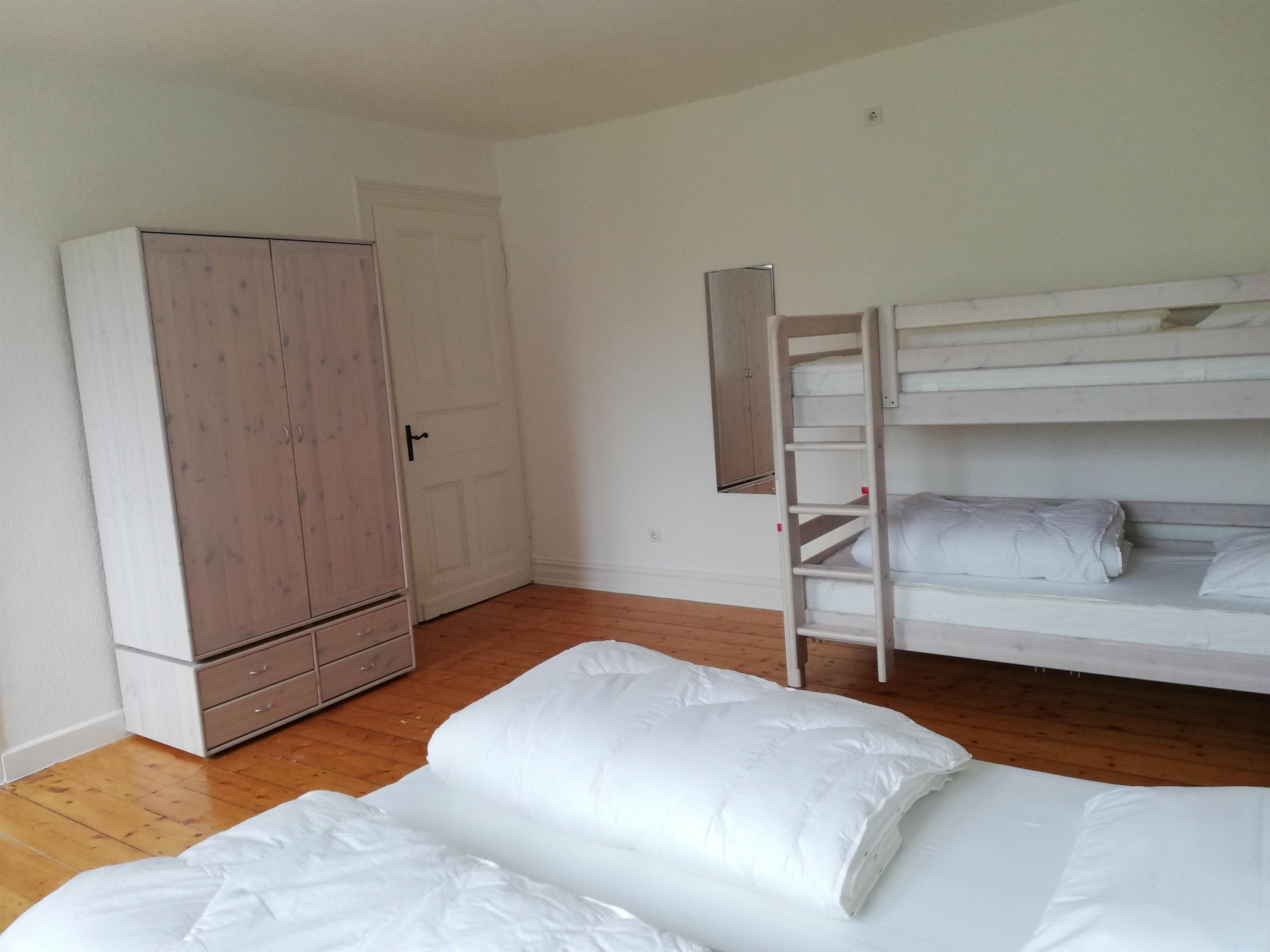 Es gibt zwei Schlafzimmer, eines mit 2 Einzel-Boxspringbetten und ein Etagenbett, und das andere Schlafzimmer verfügt über ein Doppelbett.