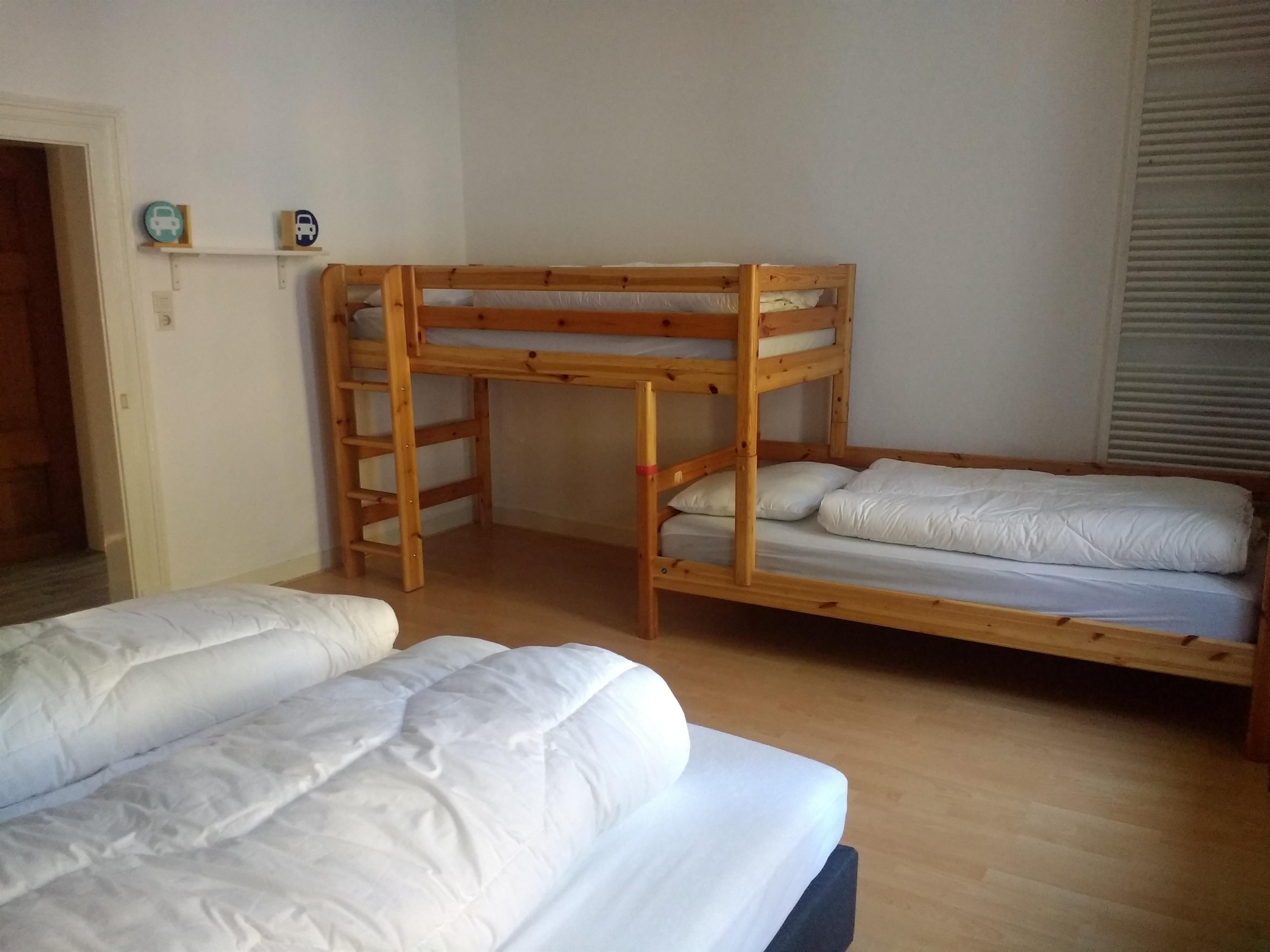 Es gibt zwei Schlafzimmer, eines mit 2 Einzel-Boxspringbetten und ein Etagenbett, und das andere Schlafzimmer verfügt über ein Doppelbett.