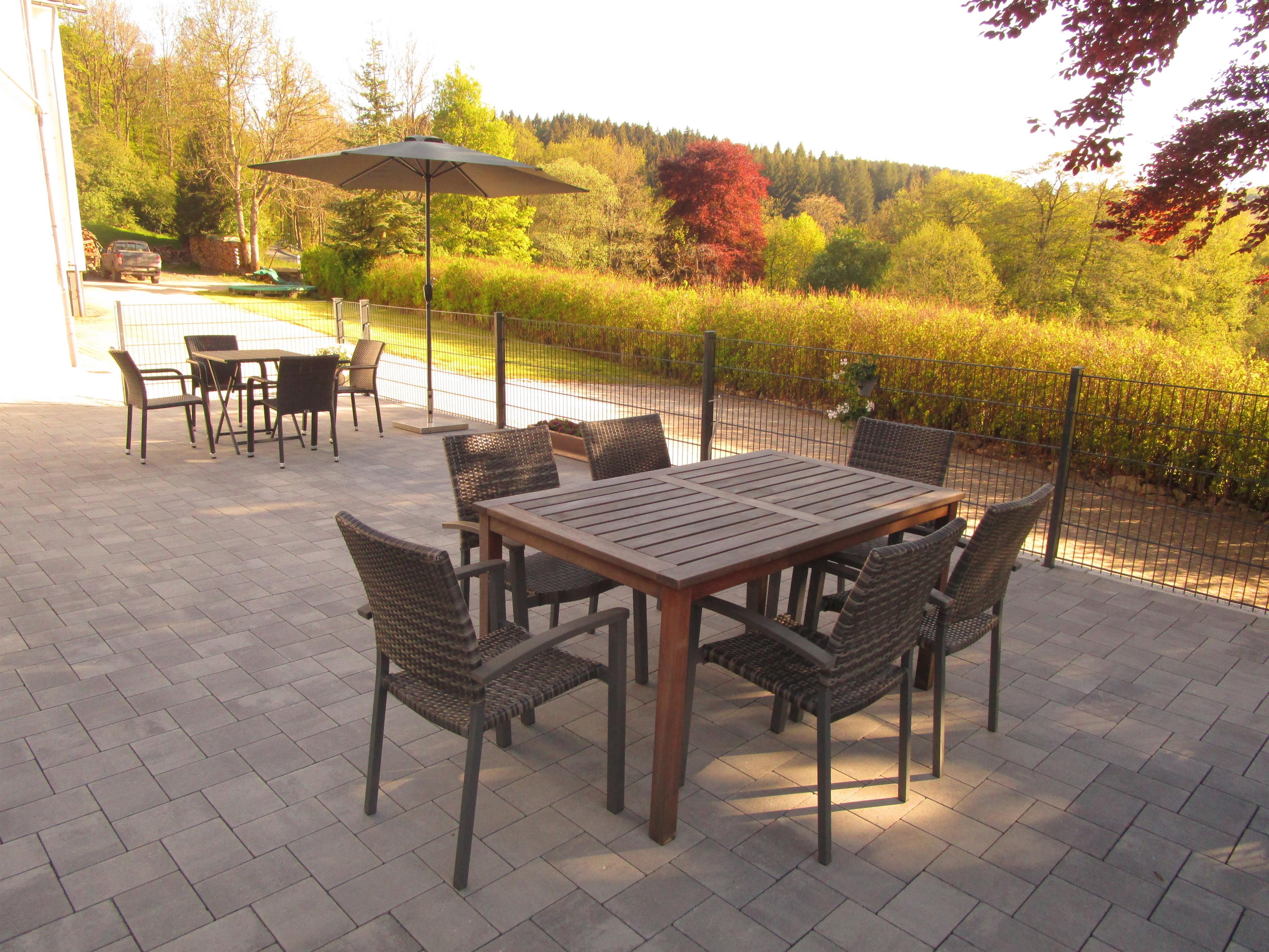 Das Haus verfügt über einen großen Garten mit Terrasse, Spielecke, Baumhaus, Sandkasten, Trampolin und großer Liegewiese. Eine Reihe von Wanderwegen beginnen im Wald hinter dem Haus.