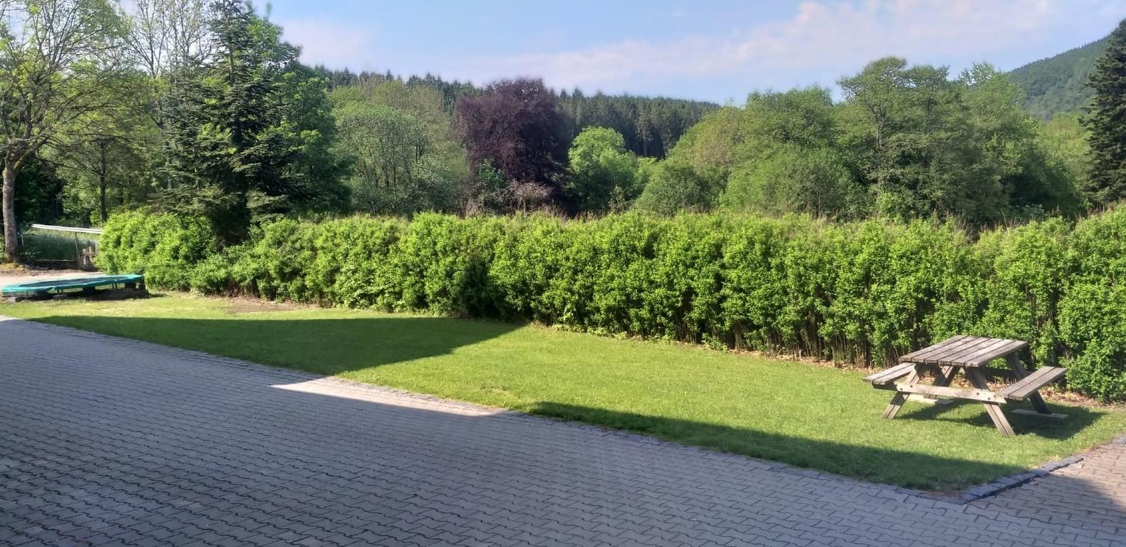 Das Haus verfügt über einen großen Garten mit Terrasse, Spielecke, Baumhaus, Sandkasten, Trampolin und großer Liegewiese. Eine Reihe von Wanderwegen beginnen im Wald hinter dem Haus.
