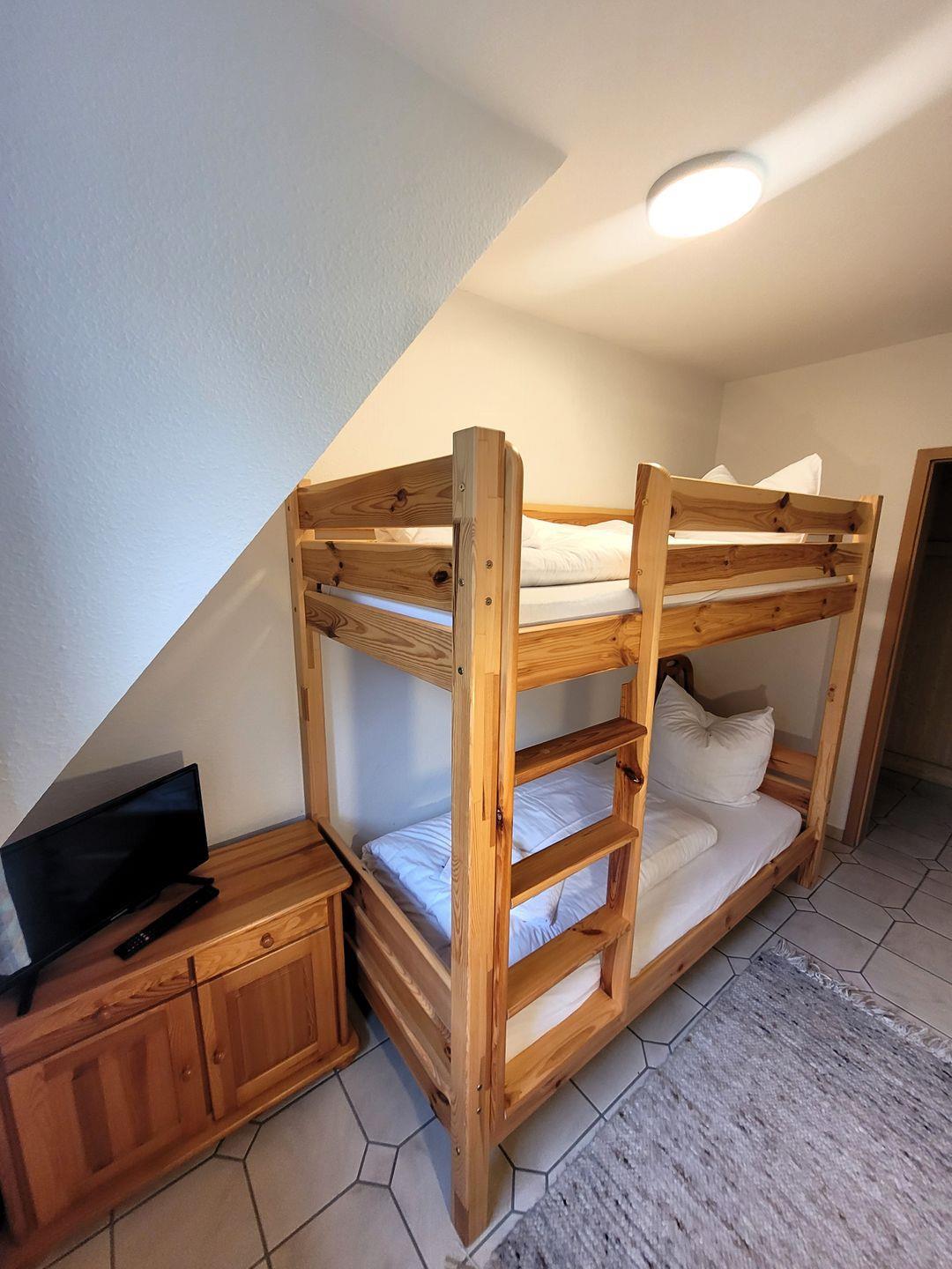 Insgesamt ca. 62 m² Wohnfläche verteilen sich auf eine Diele, einen großen Wohn-Essraum mit offener Küche und Zugang zum geräumigen Balkon, ein hell gefliestes Bad mit Dusche/Waschtisch/WC, ein Schlafzimmer mit einem Doppelbett sowie ein Schlafzimmer mit einem Etagenbett und einem zusätzlichen Fernseher.