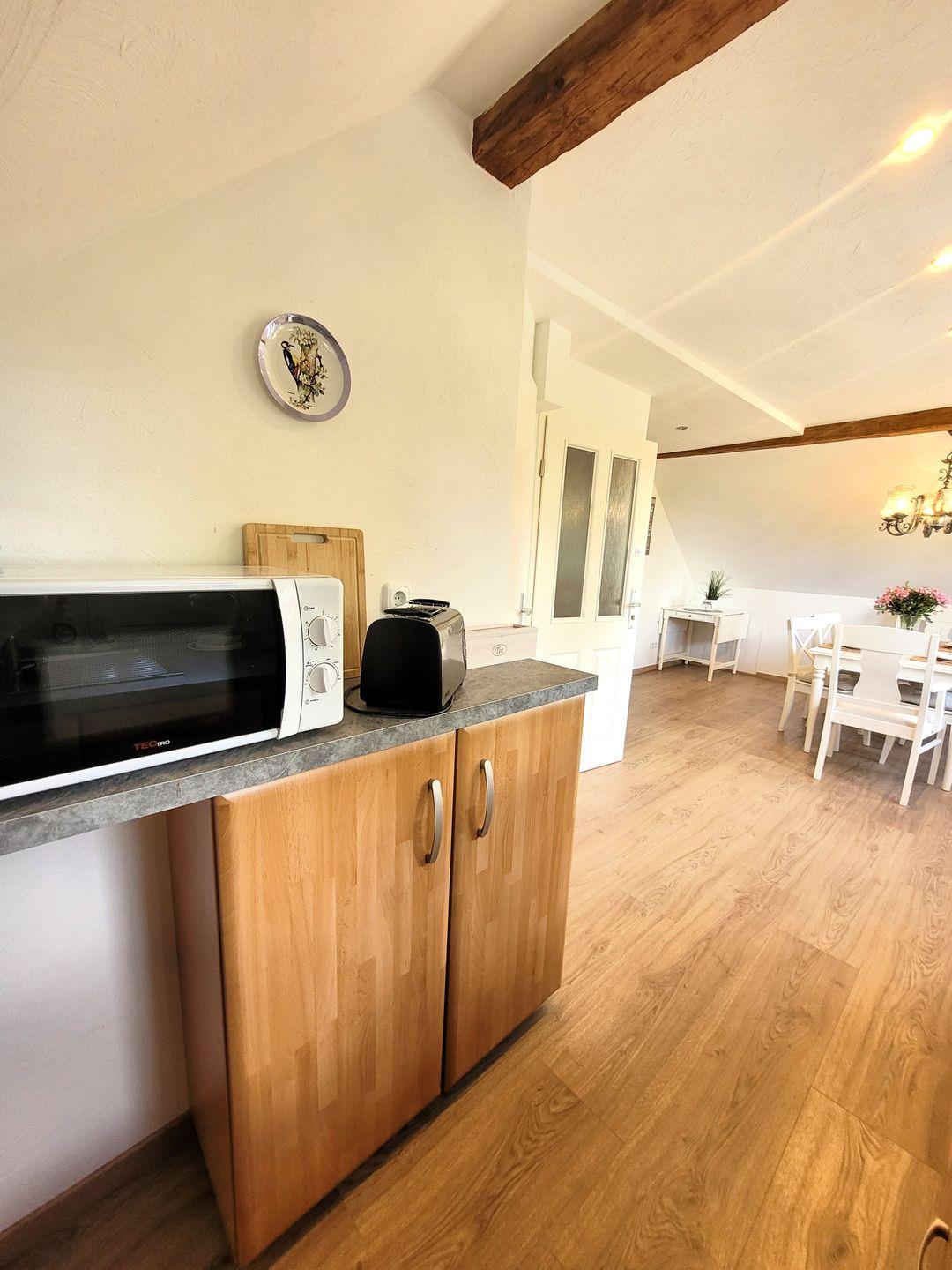 Zu dieser komfortablen Ferienwohnung gehört ein PKW-Stellplatz links neben dem Haus.