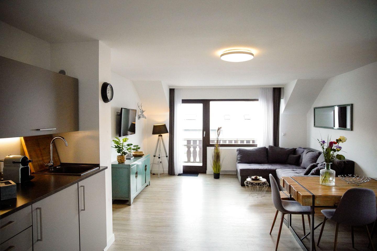 - Ein möblierter Balkon vervollständigt das Apartment.