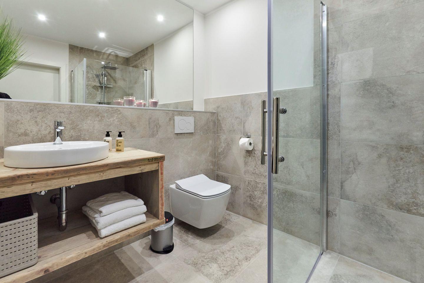 Die Wohnung bietet zwei gut ausgestattete Badezimmer, einschließlich bodengleicher Duschen und hochwertiger Badeausstattung. Damit können sich unsere Gäste jederzeit frisch machen und entspannen. Für Familien stehen außerdem ein Kinderhochstuhl und ein Babybett zur Verfügung, sodass sich auch die kleinen Gäste wohlfühlen können.