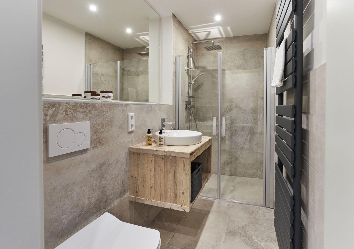 - Ein modernes Dusch-Bad mit Rainshower-Dusche und Föhn.