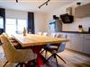 - In der Küche gibt es einen großzügigen Esstisch, begleitet von einem Flachbildfernseher und einem Schlafsofa.