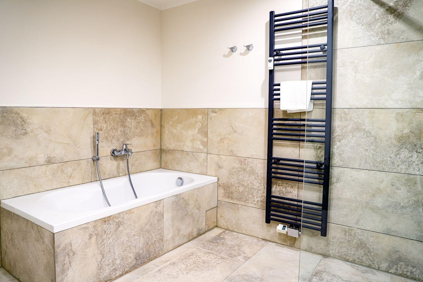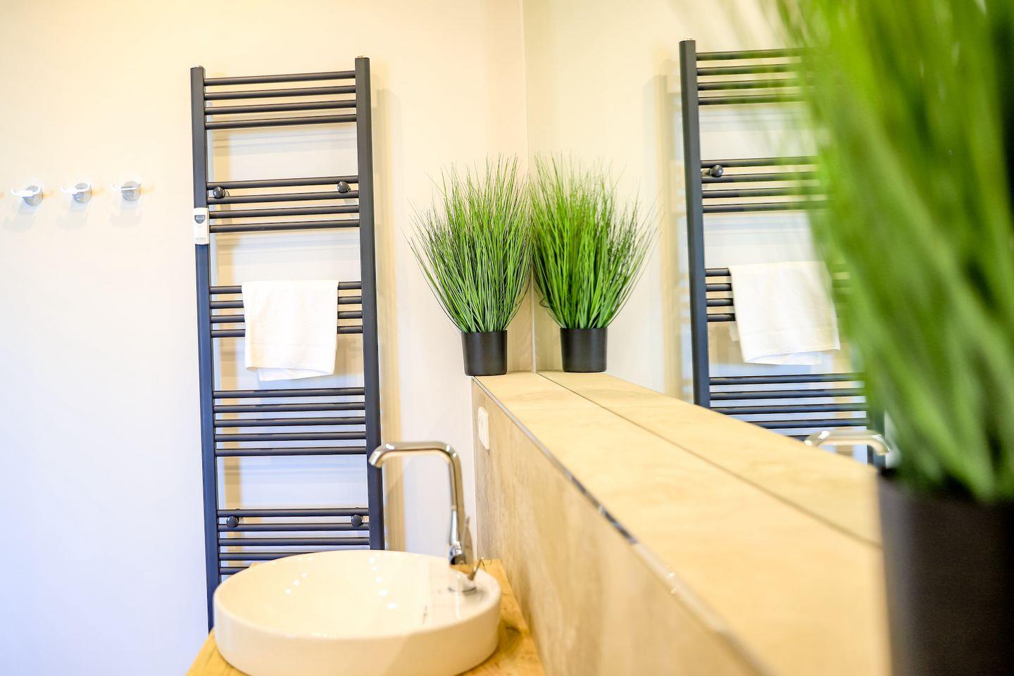 - Zwei moderne Badezimmer mit einer Rainshower-Dusche, WC, Waschtisch und Föhn. Eines der Badezimmer verfügt über eine gemütliche Badewanne.