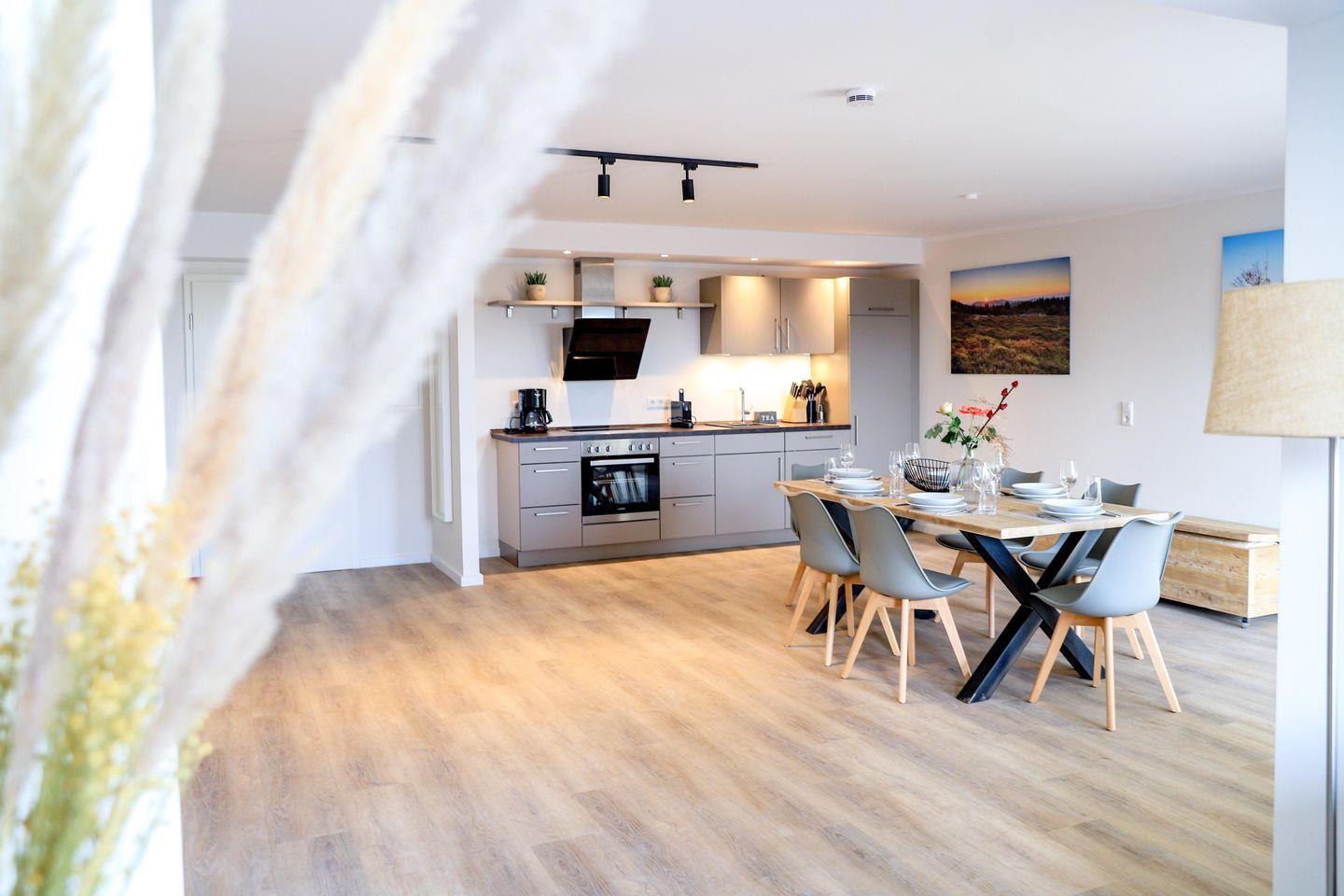 - Die Küche im Wohn-Esszimmer ist voll ausgestattet und verfügt über eine Spülmaschine, einen Kühlschrank, ein Ceranfeld, einen Backofen, einen Toaster und einen Wasserkocher mit einer Auswahl erlesener Teesorten. Es gibt auch eine Filterkaffeemaschine und eine Nespressomaschine mit Kapseln für den Anreisetag. Der Wohn-Essbereich bietet Platz für 6 Personen am Tisch und verfügt über ein Schlafsofa mit Platz für 2 weitere Personen. Ein Hochstuhl kann auf Wunsch zur Verfügung gestellt werden.
