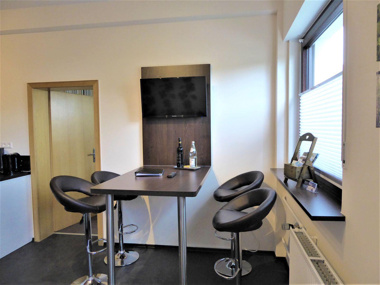 Der Wohnraum ist sehr gemütlich eingerichtet. Der offene Wohn Essbereich ist perfekt zum verweilen mit Freunden und Familie. Der Weg in die Stadt ist sehr kurz es liegt also an euch ob ihr Essen geht oder selber kocht.