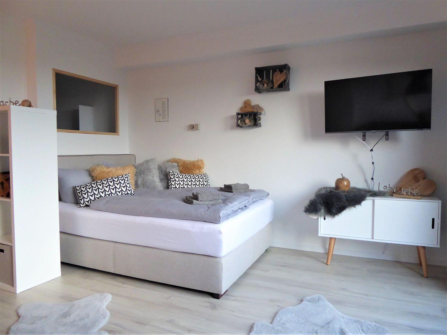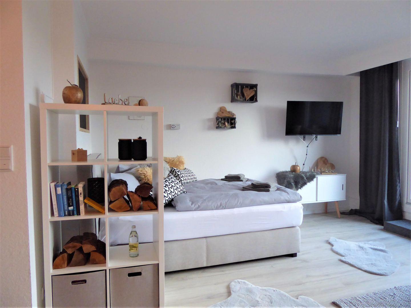Auf 42qm erwartet Sie ein liebevoll eingerichteter Wohnbereich mit Panoramafenstern und direktem Zugang zum Balkon, der neben gemütlichen "chill out" Möbeln auch die Möglichkeit zum Barbecue bietet.