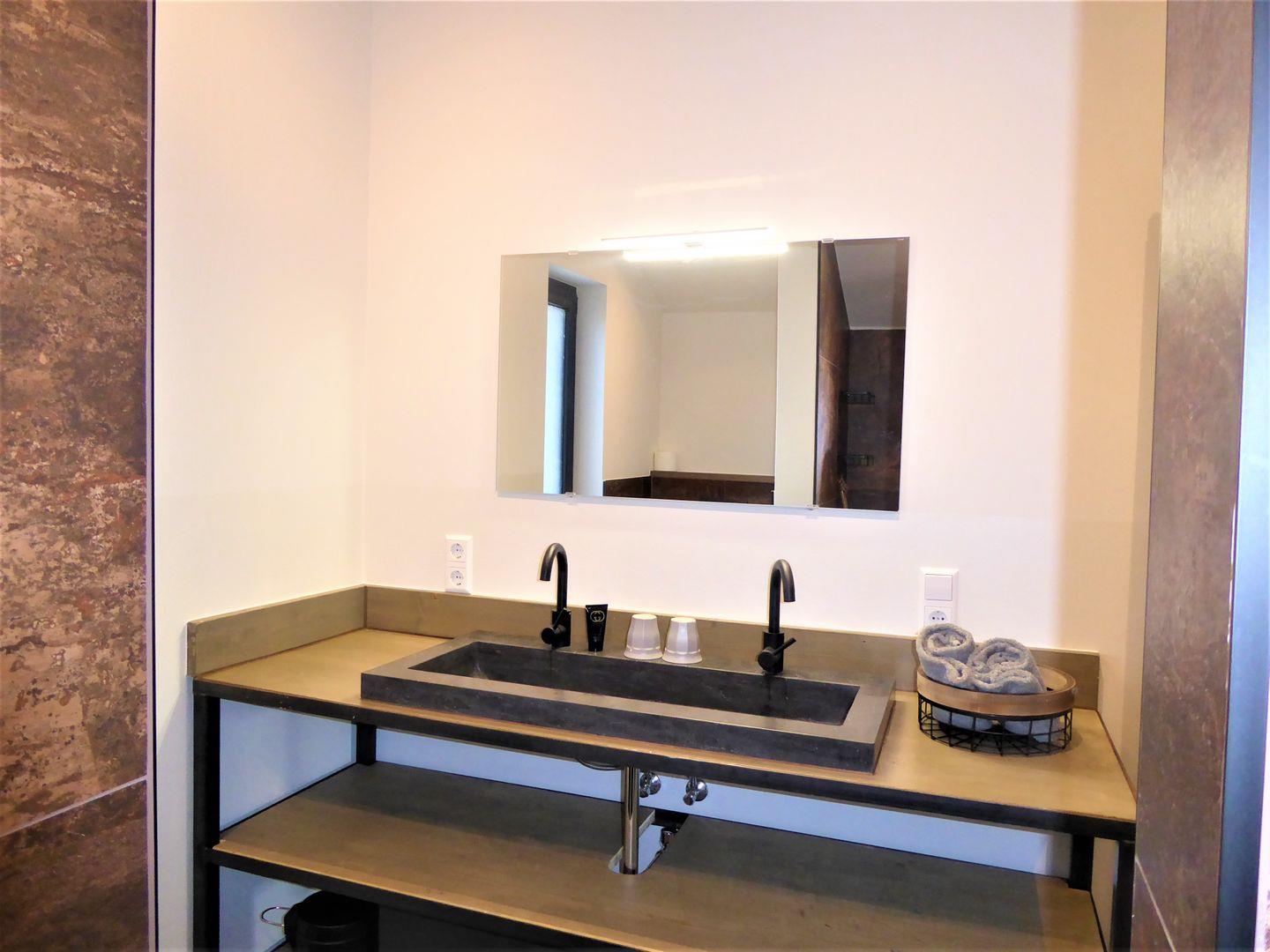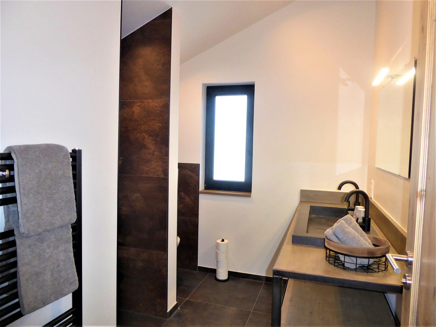 Das große Lichtdurchflutetes Badezimmer mit einer großen Dusche befindet sich auch auf dieser Etage.