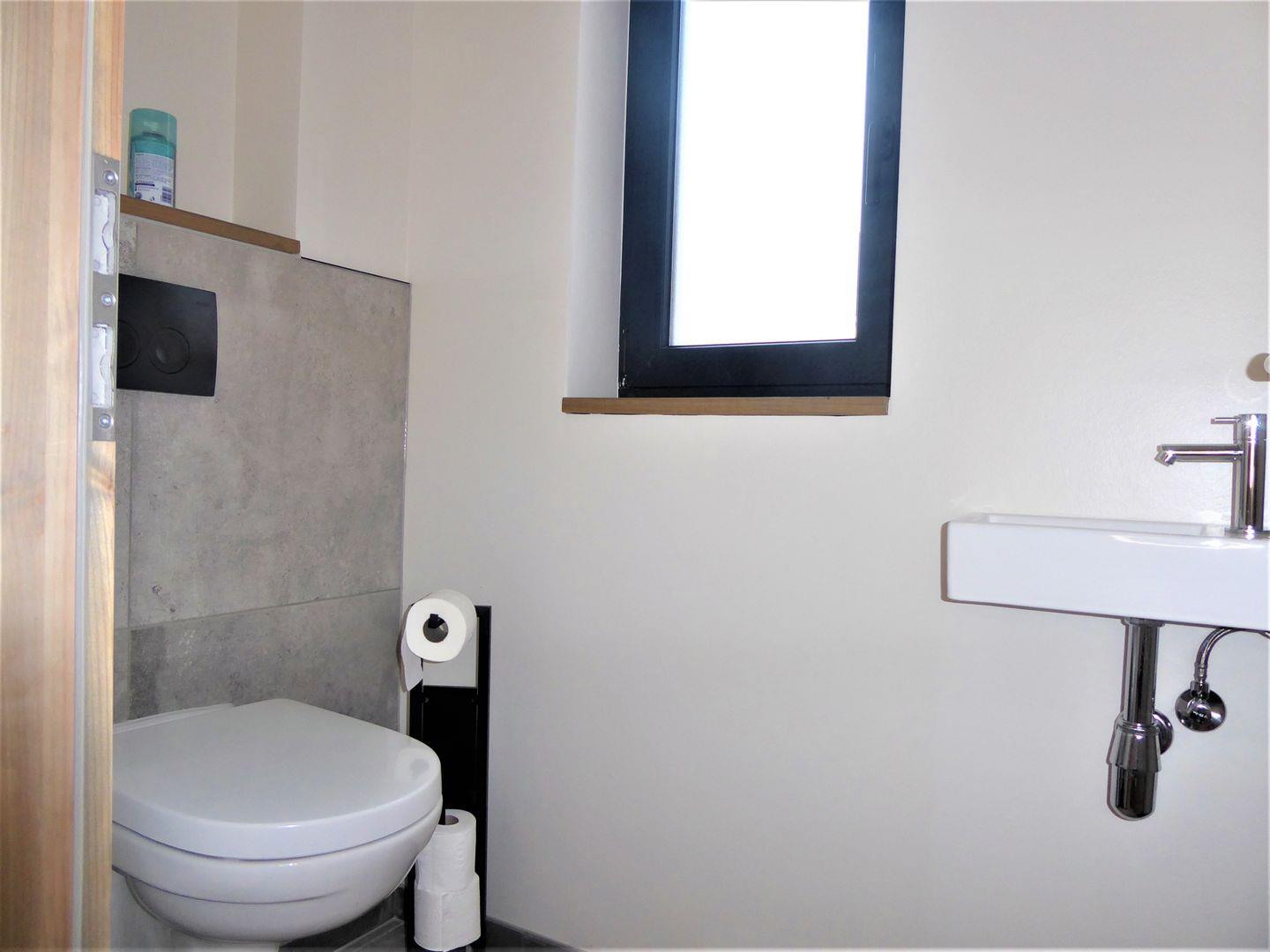 In der unteren Etage befinden sich ein großer Wohn Essbereich wo ihr nach Herzenslust kochen könnt. Die Küche ist neu und mit allem was ihr braucht ausgestattet. Der Wohnbereich läd ein für schöne Familien oder Weinabende mit Freunden ein. Ihr habt eine große Terrasse hinten. Im Untergeschoss befinden sich außerdem ein Gäste WC ein kleiner Abstellraum unter der Treppe und einen großen Abstellraum für Fahrräder Skier oder Schlitten.