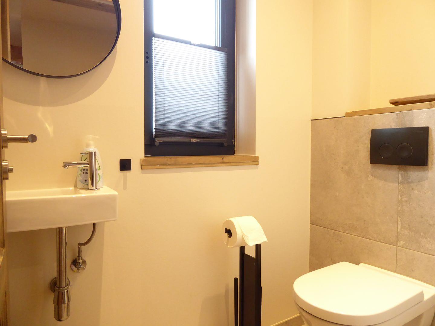 In der unteren Etage befinden sich ein großer Wohn Essbereich wo ihr nach Herzenslust kochen könnt. Die Küche ist neu und mit allem was ihr braucht ausgestattet. Der Wohnbereich läd ein für schöne Familien oder Weinabende mit Freunden ein. Ihr habt eine große Terrasse hinten. Im Untergeschoss befinden sich außerdem ein Gäste WC ein kleiner Abstellraum unter der Treppe und einen großen Abstellraum für Fahrräder Skier oder Schlitten.