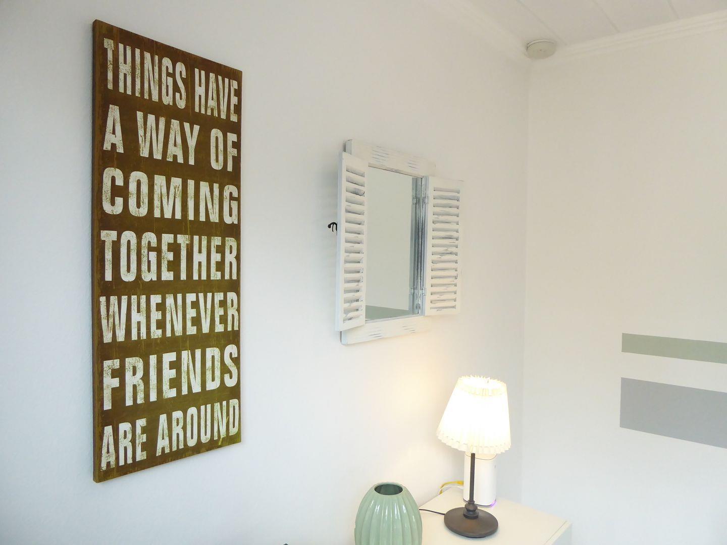 Der Wohnraum ist sehr gemütlich und stylisch eingerichtet. Der offene Wohn Essbereich ist perfekt zum verweilen mit Freunden und Familie. Der Weg in die Stadt ist sehr kurz es liegt also an euch ob ihr Essen geht oder selber kocht.