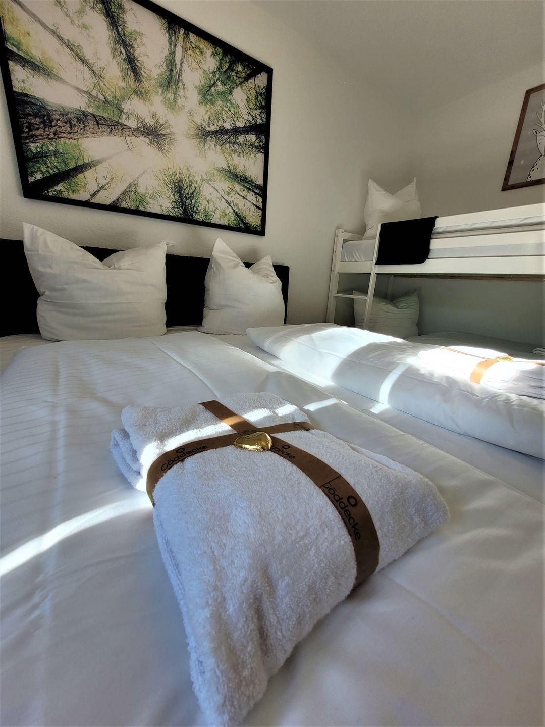 Das ansprechende und sehr komfortable Winterberg Appartement Nr. 21122 verfügt über ca. 55 m² Wohnfläche, die sich auf eine Diele, ein Bad mit Wanne/Dusche/WC/Waschtisch, eine modern ausgestattete Küche mit Spülmaschine, Induktions-Kochfeld, Backofen etc., ein Schlafzimmer mit einem Doppelbett und einem Etagenbett und ein großzügiges Wohn-Esszimmer verteilen.