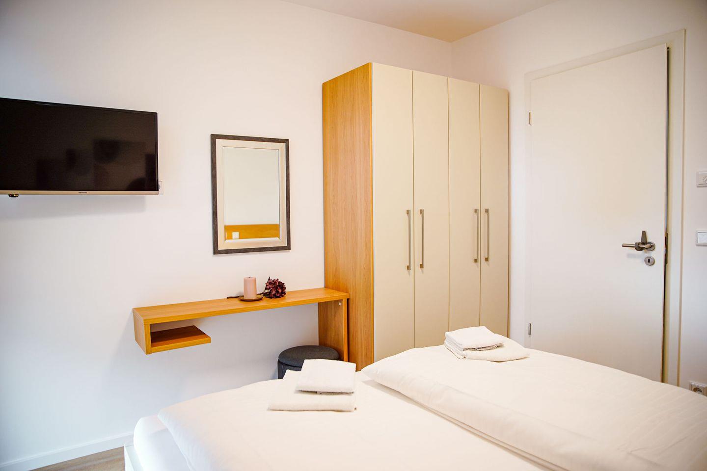 - Schlafzimmer 1: Ein komfortables Doppelbett und ein TV (ausschließlich Internet-TV).