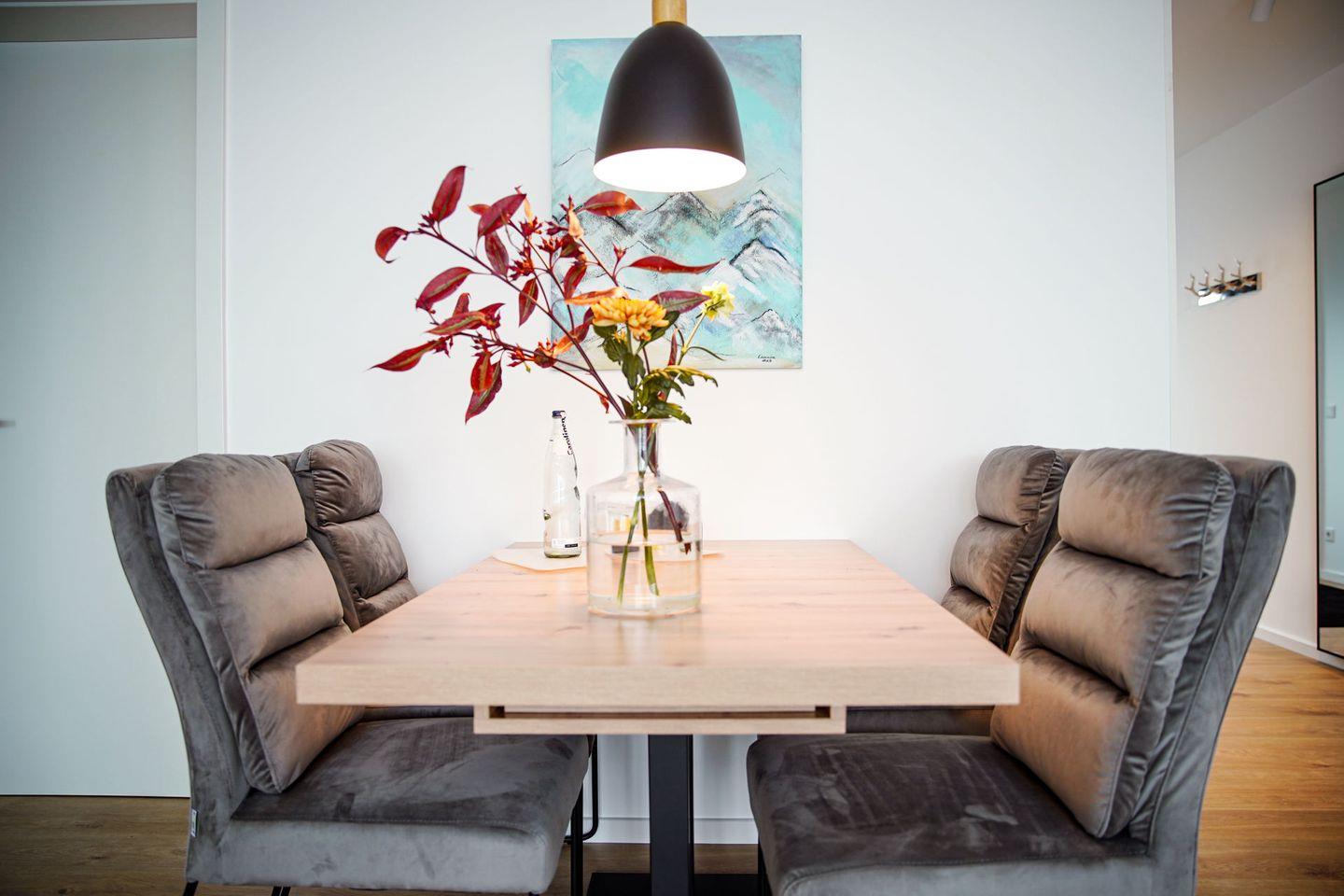 - Geräumiges Wohnzimmer mit Essbereich und einer gemütlichen Einrichtung.