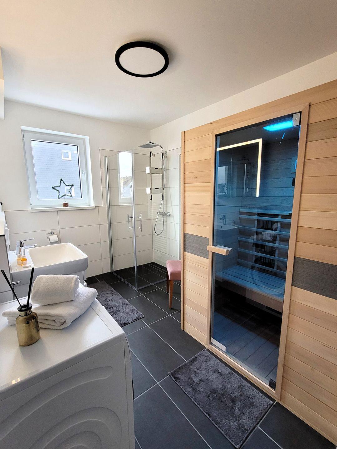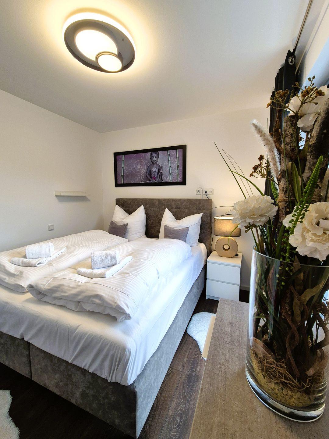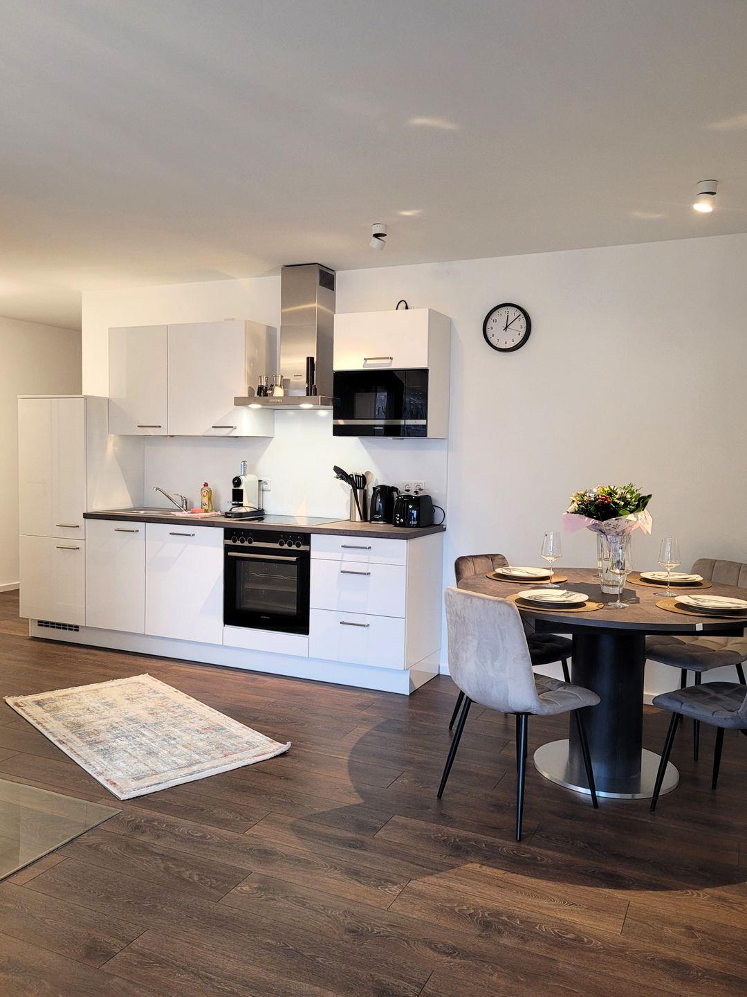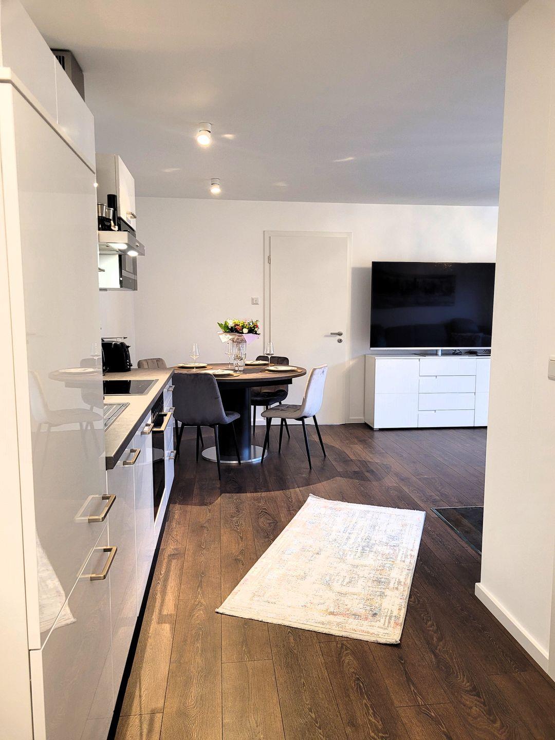 Insgesamt ca. 90 m² Wohnfläche verteilen sich auf eine Diele, ein großes Wohnzimmer mit einer offenen, perfekt eingerichteten Küche mit großem Esstisch, zwei geschmackvoll eingerichtete Schlafzimmer, jeweils mit Kommode, Doppelbett und Fernseher sowie ein großzügiges Badezimmer, in dem sich außer einer Waschmaschine auch noch eine Infrarotkabine für 2 Personen befindet. Sowohl vom Wohnzimmer als auch von einem Schlafzimmer aus haben Sie einen Zugang zum großen Balkon, welcher mit einem Grill und außerhalb der Wintersaison mit Gartenmöbel bestückt ist. Für die 5. Person steht eine Schlafcouch im Wohnzimmer zur Verfügung.