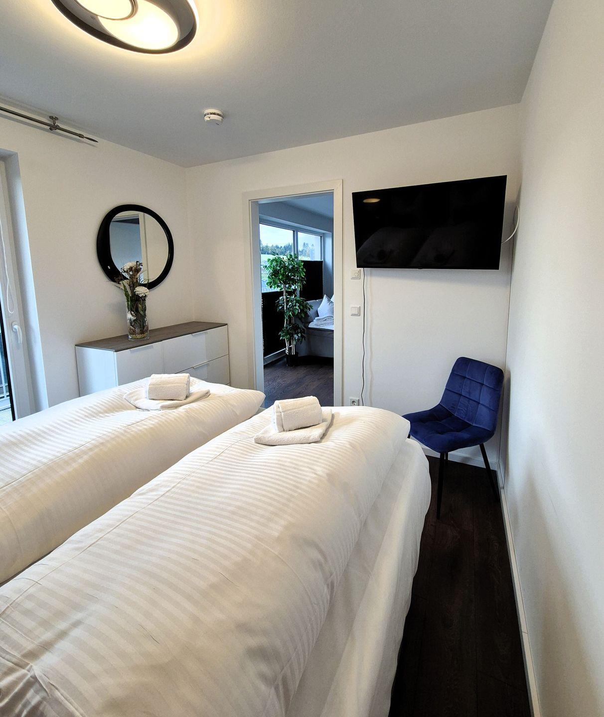 Deutsche Fernsehsender können über die App Joyn, die sich auf dem Fernseher im Wohnzimmer befindet, gestreamt werden. In den Schlafzimmer ist Rakuten TV installiert, darüber erhalten Sie die gängigen Programme. Ansonsten können Sie sich überall mit Netflix oder Amazon Prime einloggen.